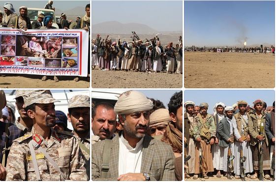 شاهد الحشود الكبيرة.. قبائل ارحب تعلن التحرك للثأر من العدوان ومرتزقته الذين ارتكبوا ابشع الجرائم منها جريمة عزاء نساء ارحب