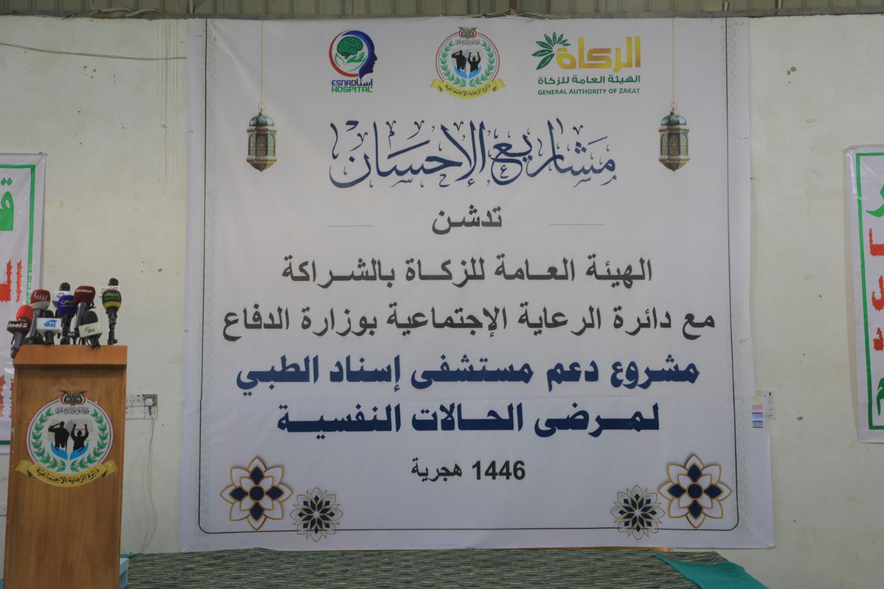 دشنت الهيئة العامة للزكاة بالتنسيق مع دائرة الرعاية الاجتماعية بوزارة الدفاع اليوم، مشروع دعم مستشفى إسناد الطبي لمرضى الحالات النفسية بتكلفة 118 مليونًا و331 ألف ريال.