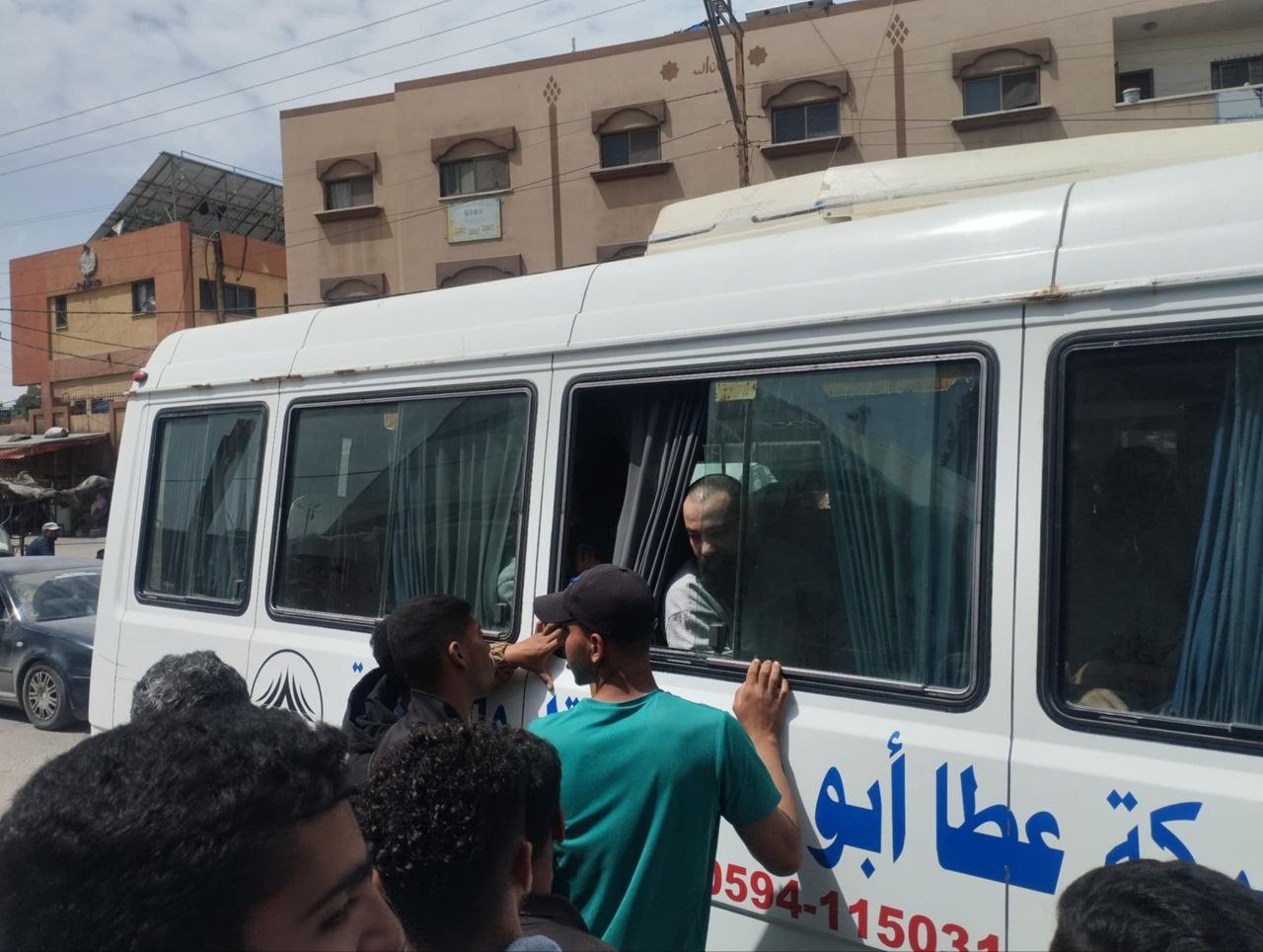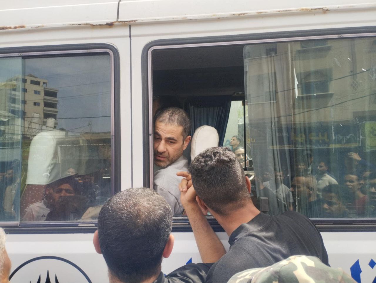 اللحظات الأولى لوصول عدد من الأسرى إلى دير البلح وسط قطاع غزة بعد تحررهم من سجون الاحتلال.