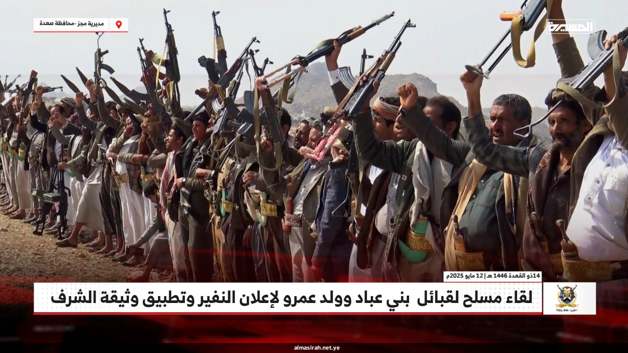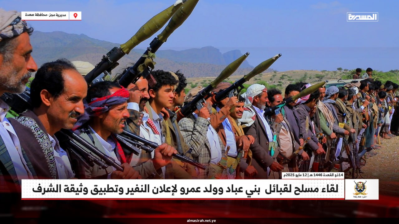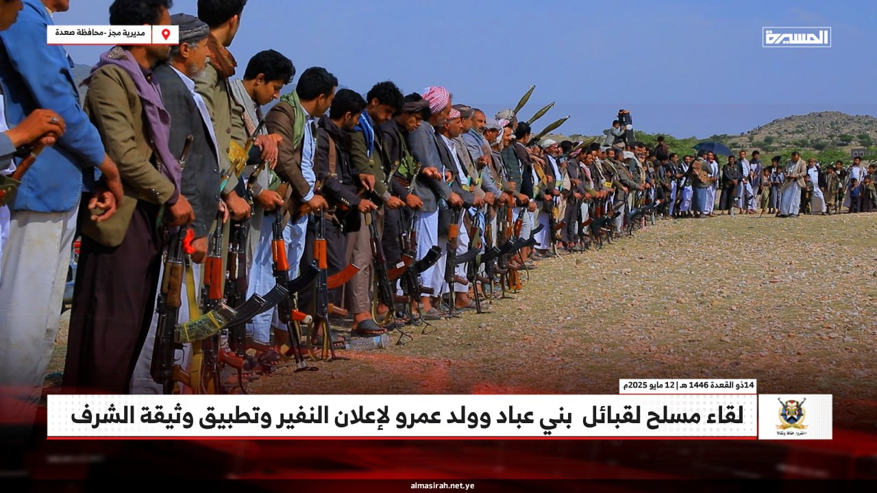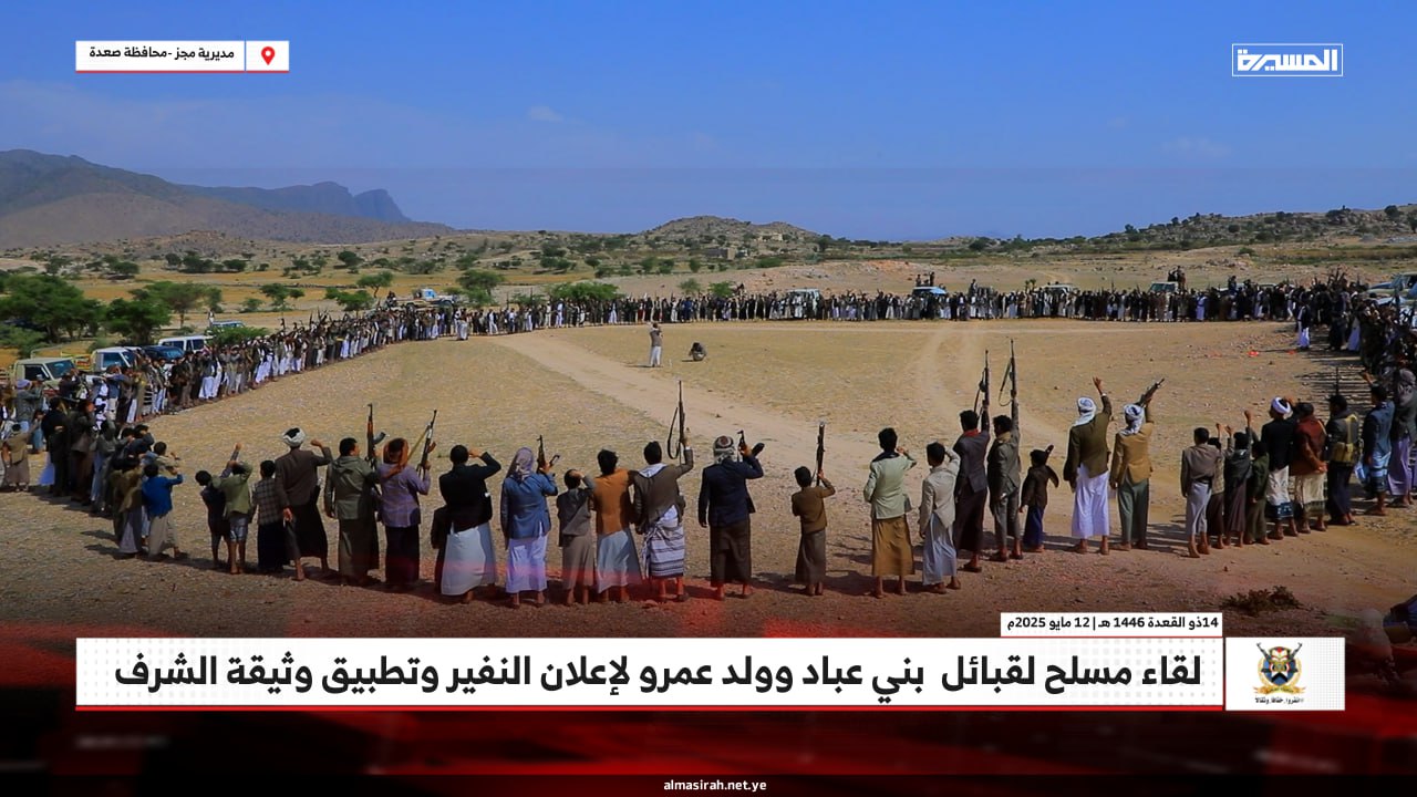 بالصور | لقاء مسلح لقبائل بني عباد وولد عمرو بمديرية #مجز في #صعدة لإعلان النفير وتطبيق وثيقة الشرف القبلي براءةً من عملاء أمريكا وإسرائيل On مايو 13, 2025