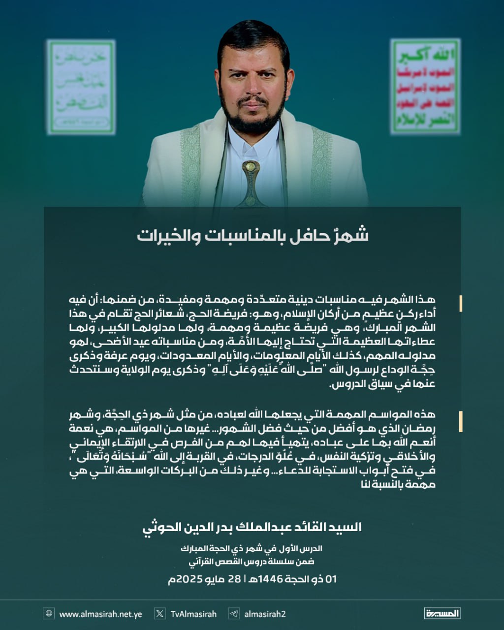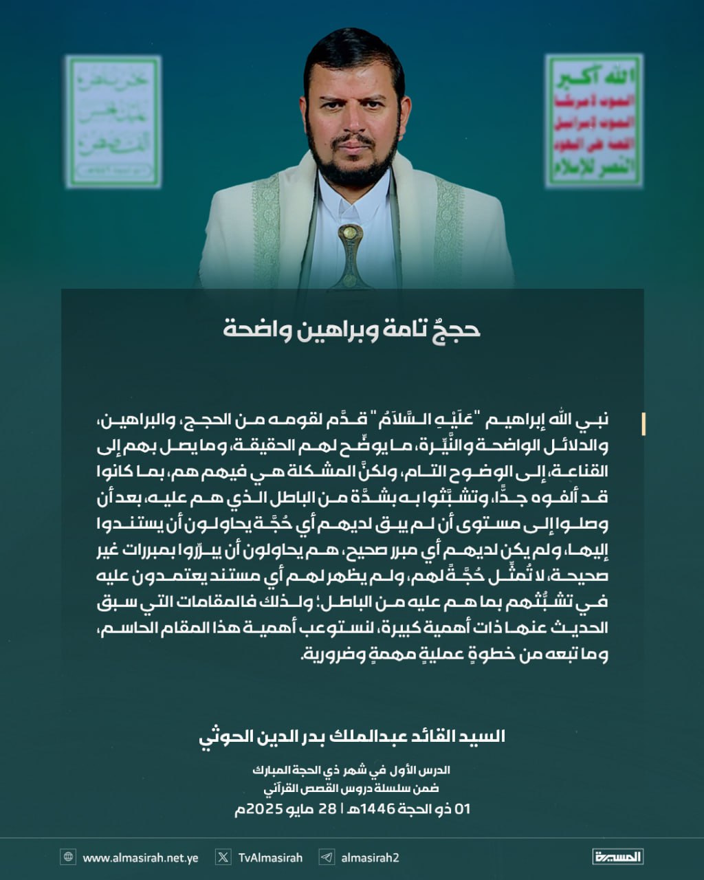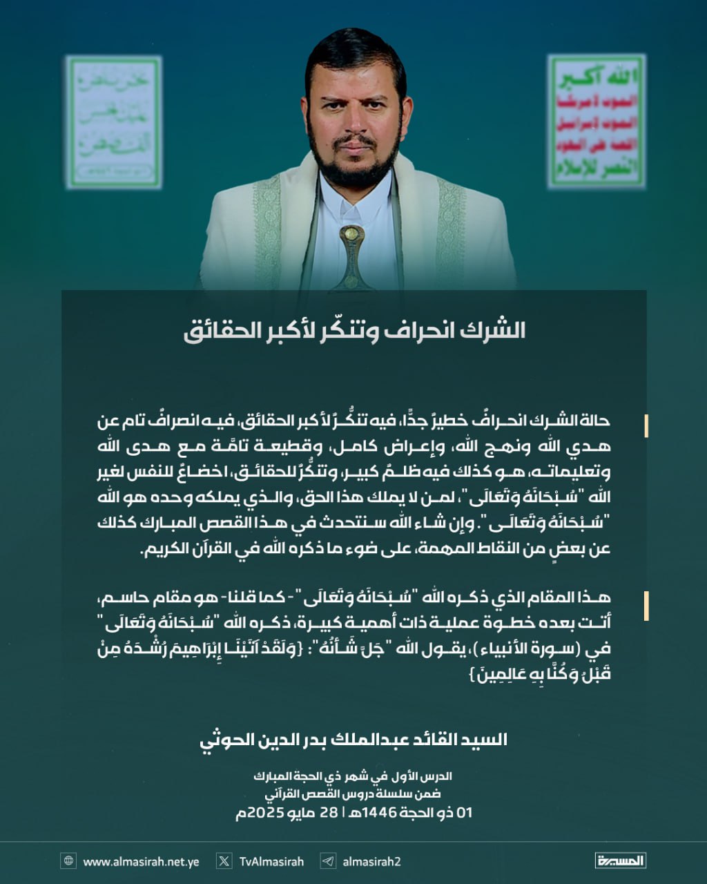 بالصور: من الدرس الأول للسيد القائد ضمن سلسلة القصص القرآني 1 ذو الحجة 1446هـ