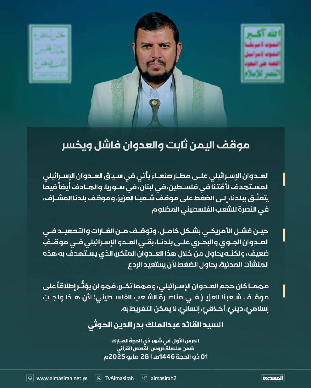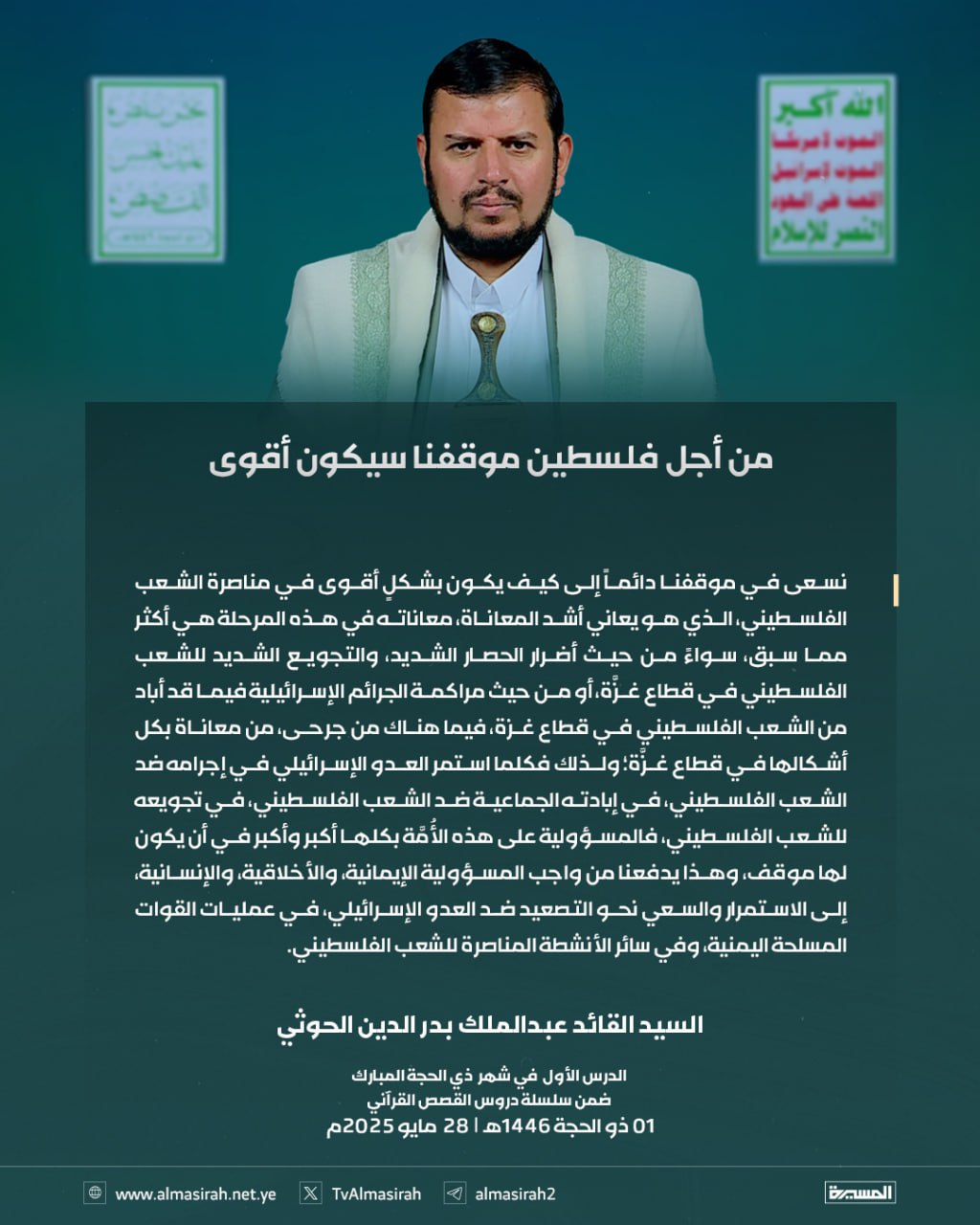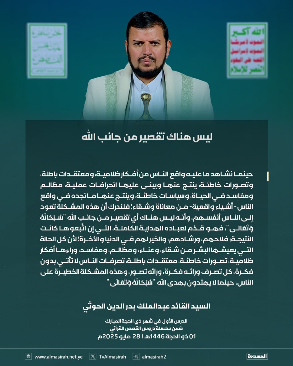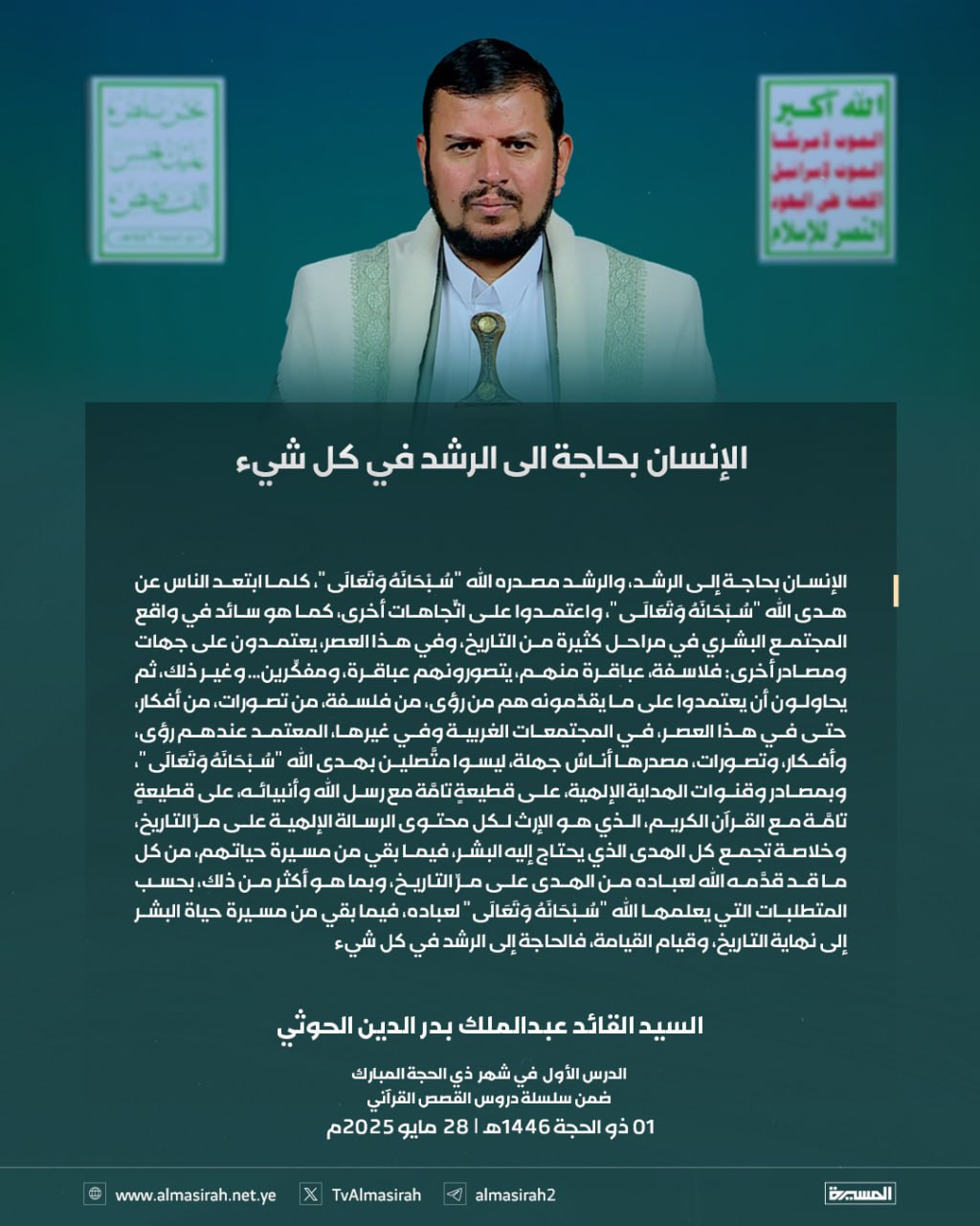 بالصور: من الدرس الأول للسيد القائد ضمن سلسلة القصص القرآني 1 ذو الحجة 1446هـ