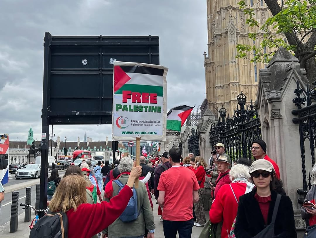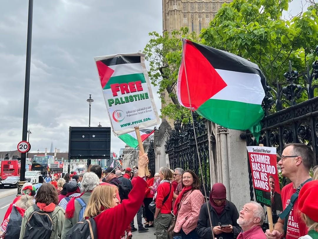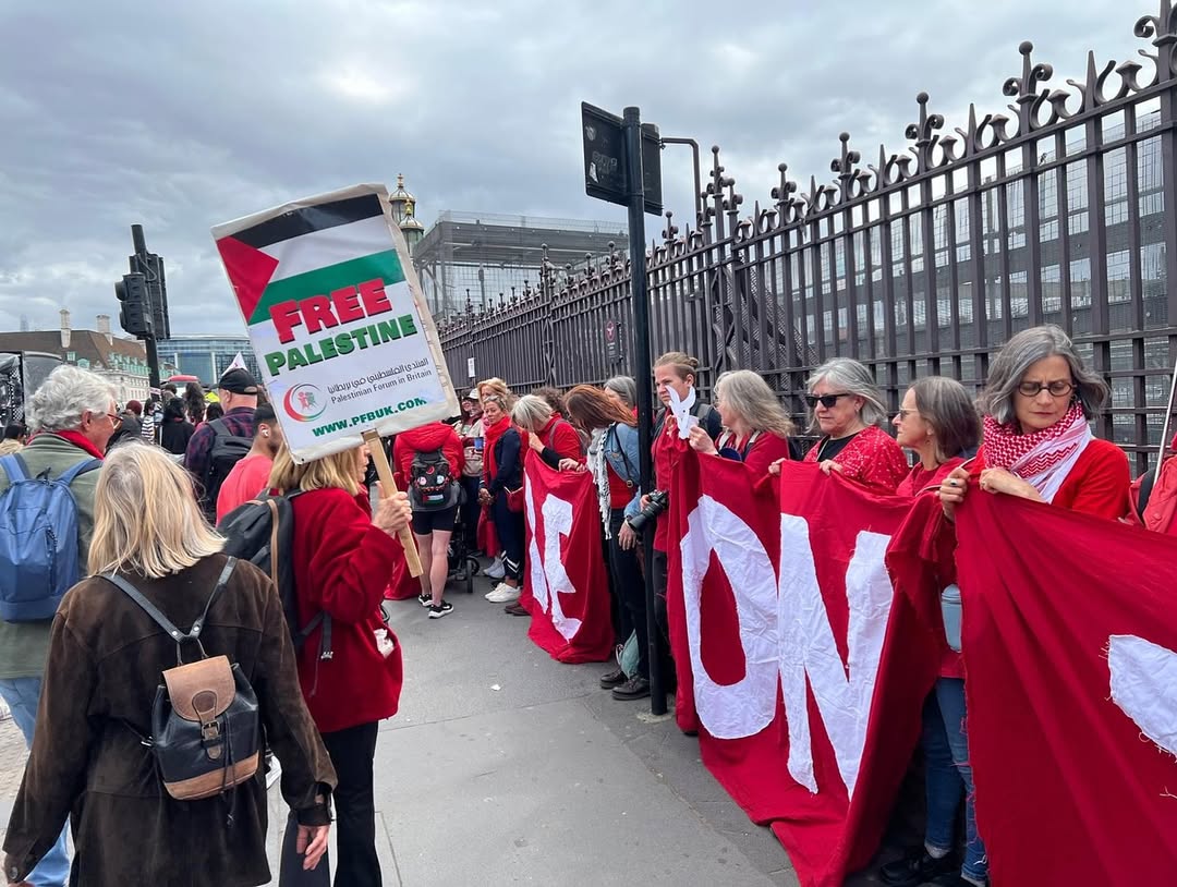 نشطاء يحيطون البرلمان البريطاني بخط أحمر للمطالبة بالتحرك لوقف حرب الإبادة والتجويع في غزة On يونيو 4, 2025