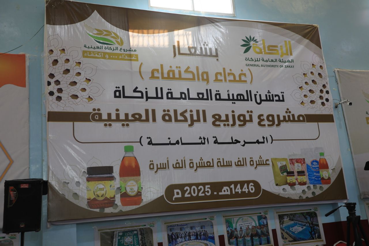 دشنت الهيئة العامة للزكاة، اليوم، مشروع توزيع الزكاة العينية من المحاصيل النقدية “المرحلة الثامنة” عدد 10 آلاف سلة لـ 10 آلاف أسرة فقيرة، تحت شعار “غذاء واكتفاء”.