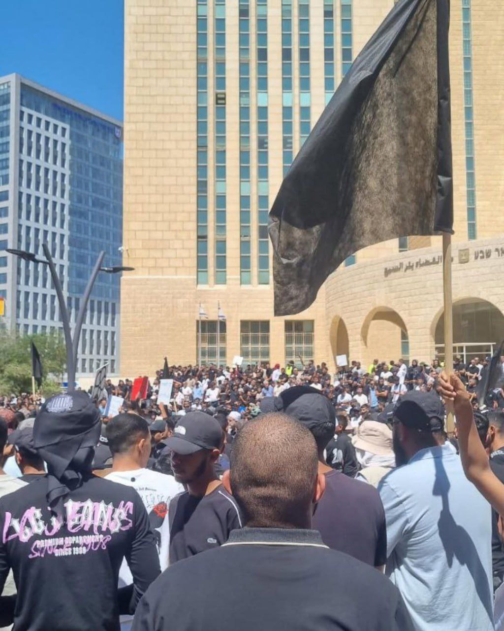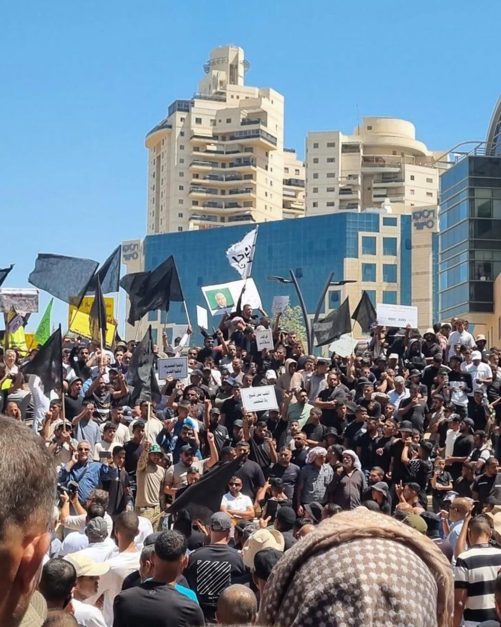 جموع كبيرة من الفلسطينيين تشارك في الوقفة المناهضة للتهجير وعمليات الهدم التي تنفذها قوات الاحتلال في النقب جنوب فلسطين المحتلة. On يونيو 12, 2025