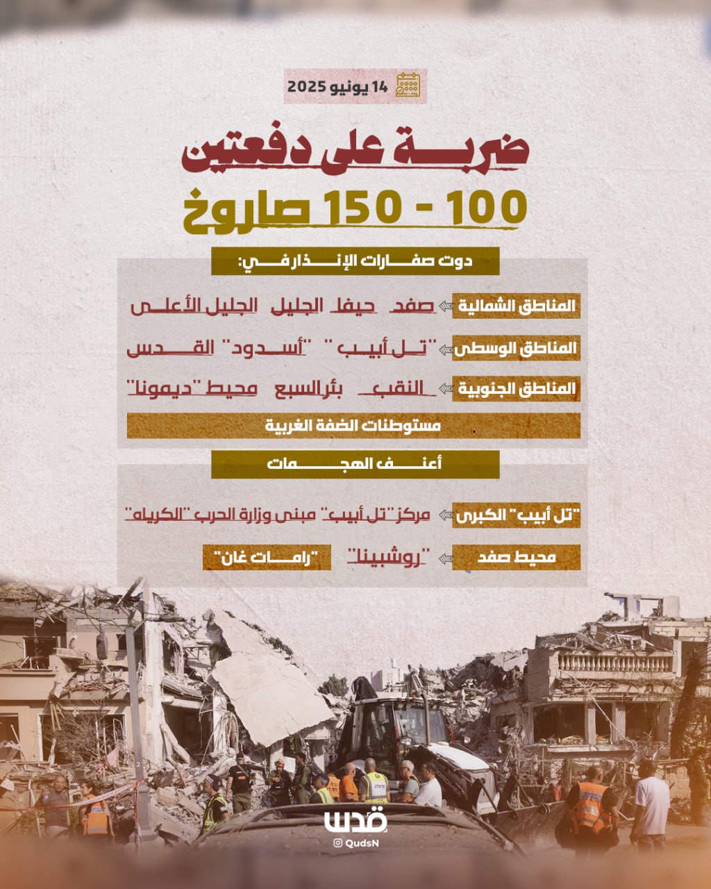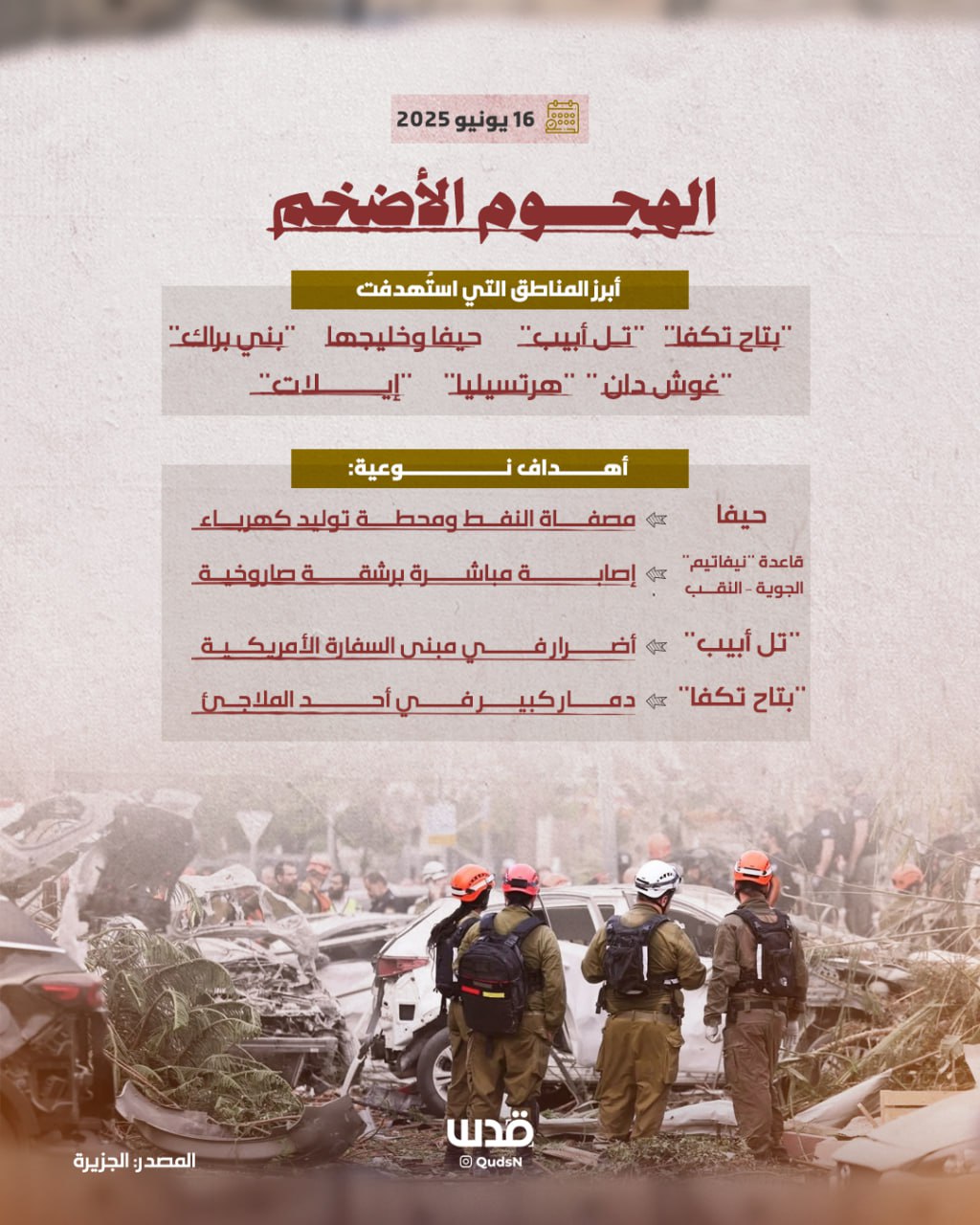 أبرز الأهداف الإيرانية في الداخل المحتل بعد استهداف مئات الصواريخ النوعية والمسيّرات التي أطلقتها إيران لليوم الثالث على التوالي. On يونيو 16, 2025