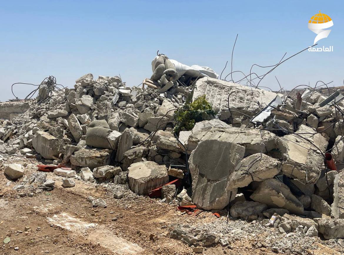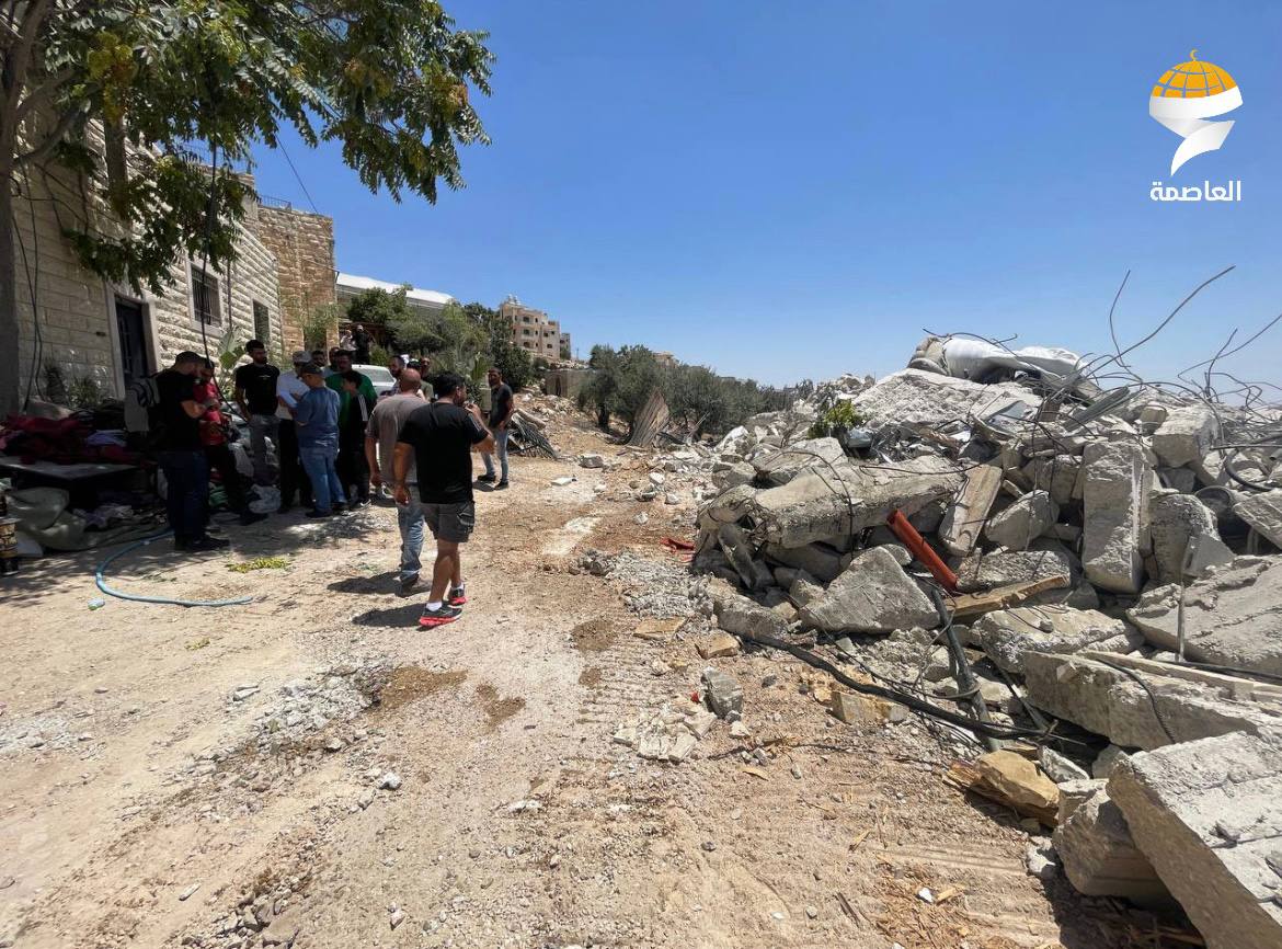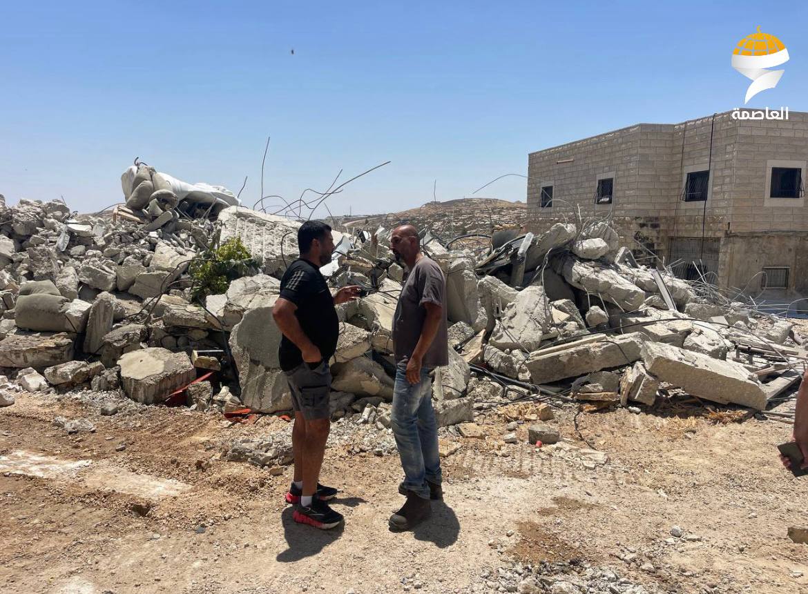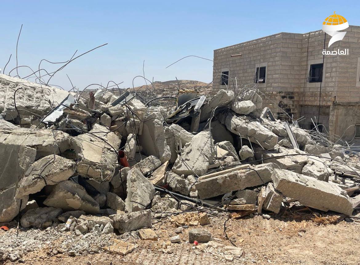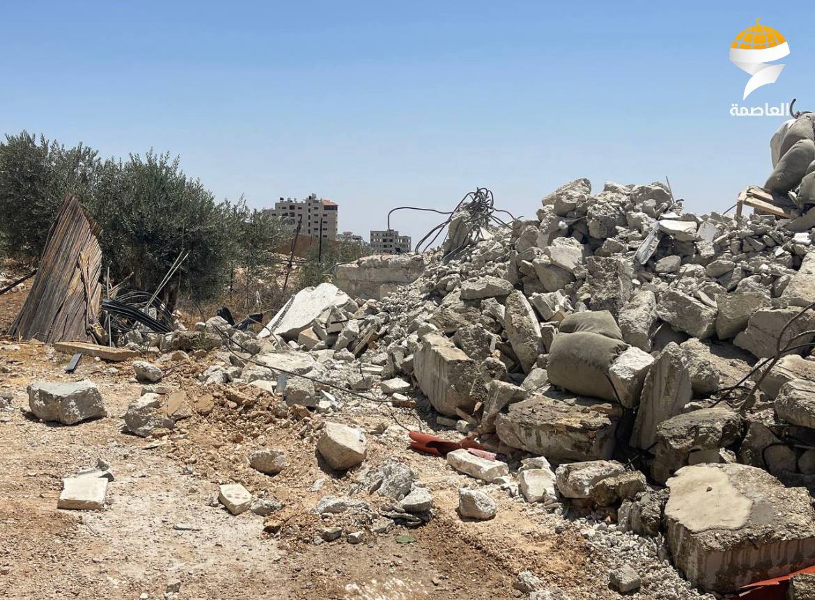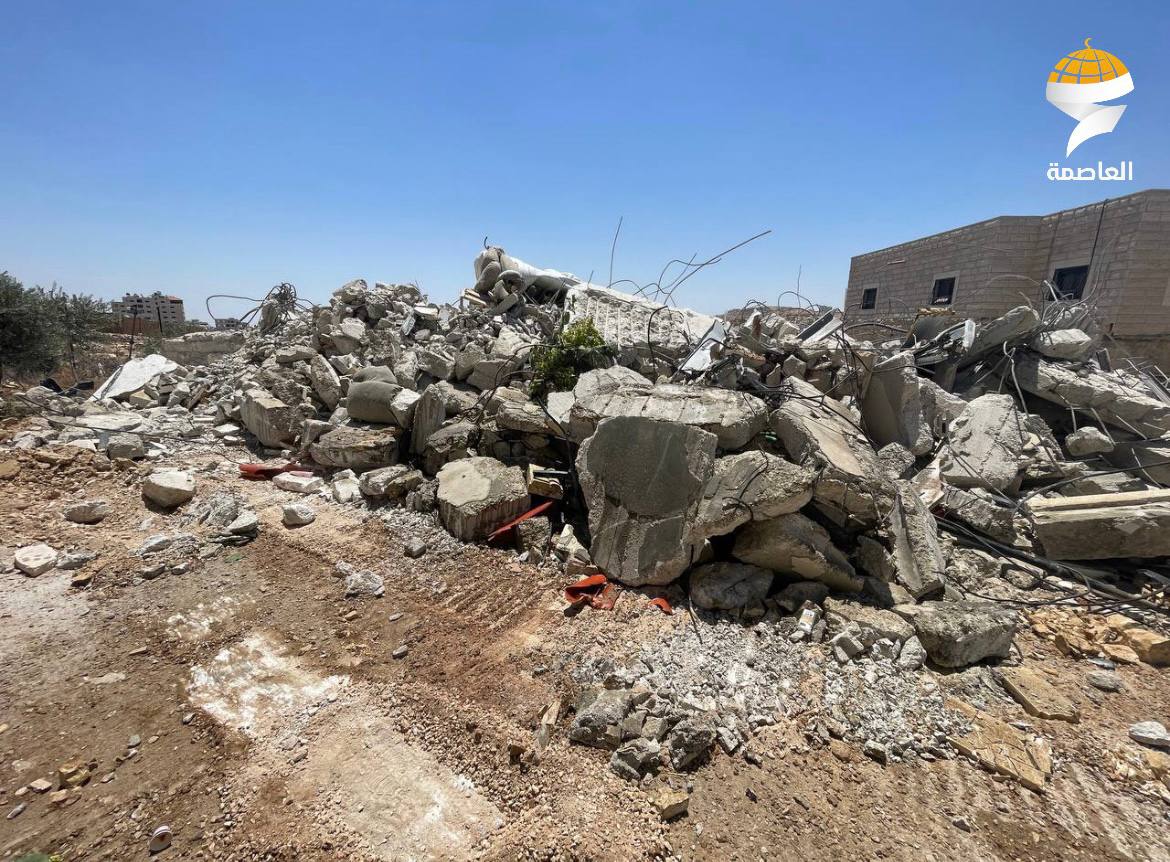 ركام منزل الفلسطيني متوكل الخطيب الذي هدمه الاحتلال اليوم في حزما شمال شرق القدس.