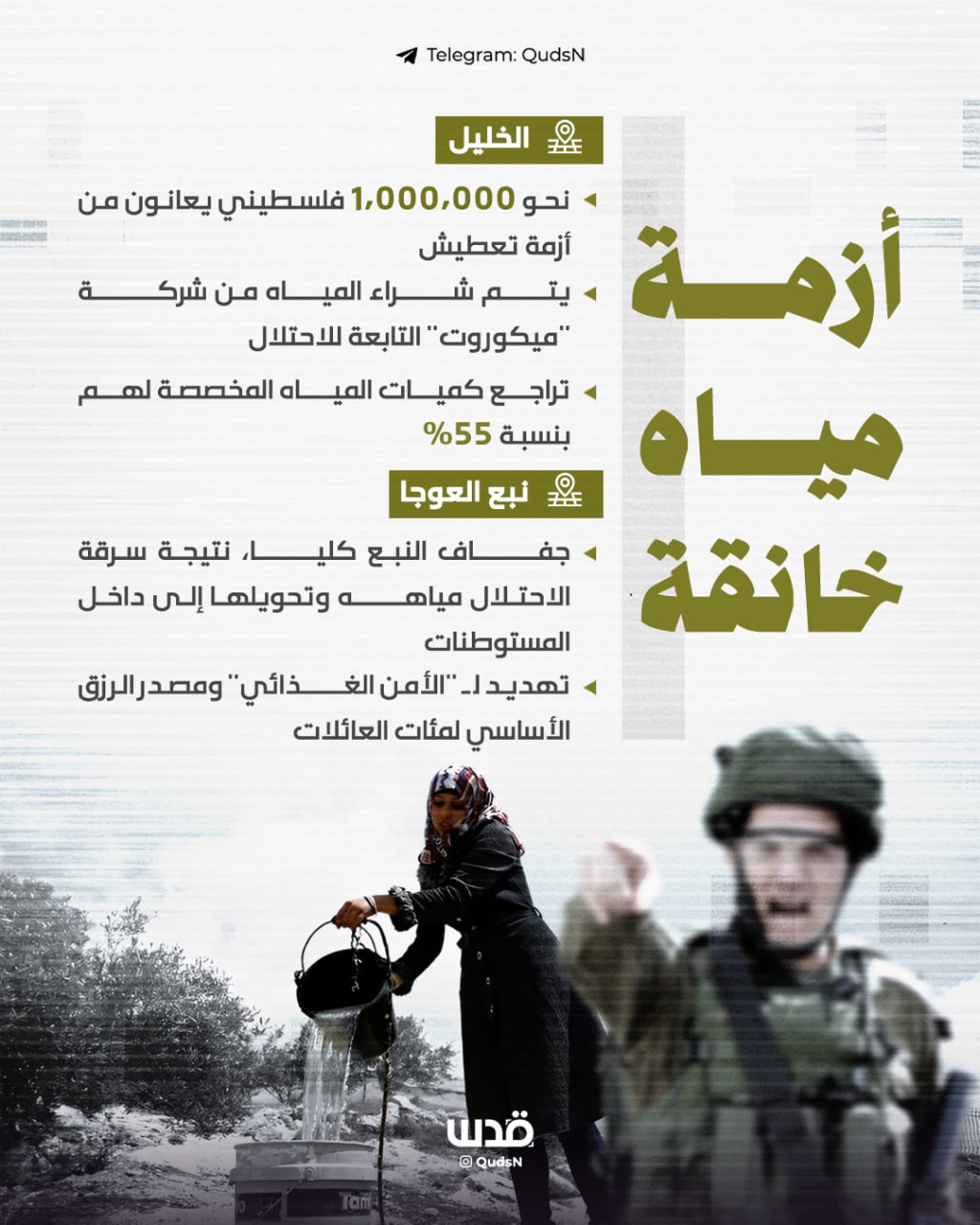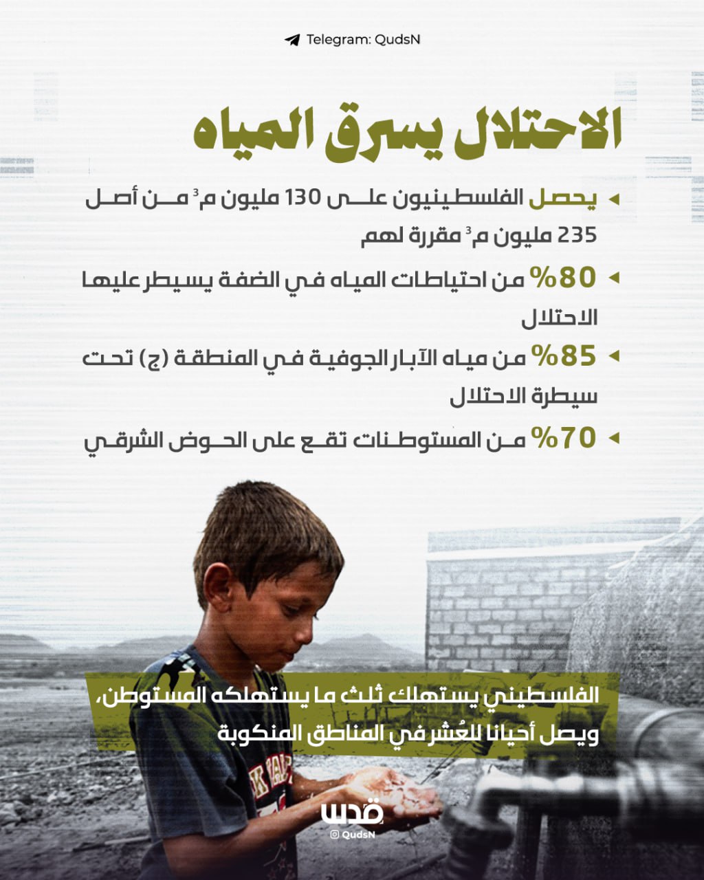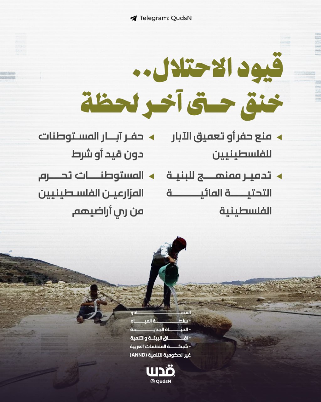 منذ النكبة وحتى اليوم، يسرق الاحتلال المياه وينهب الآبار ويحول الحق في الحياة للفلسطيني إلى حرب تعطيش..