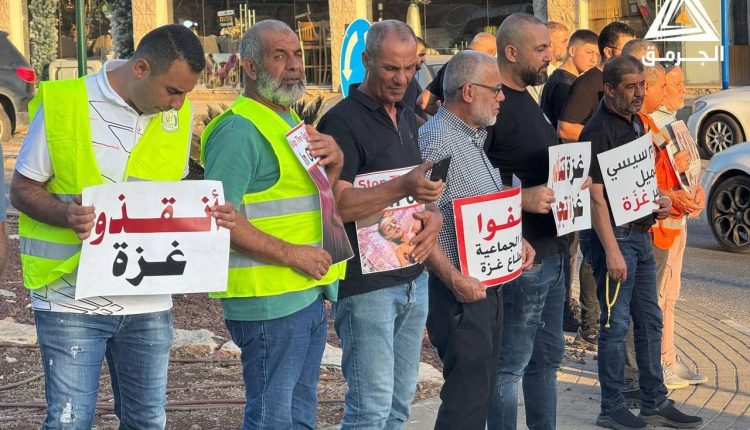 جانب من الوقفة المساندة لغزة وأهلها في مدينة اللد بالداخل المحتل، تنديدا بحرب الإبادة والتجويع في قطاع غزة