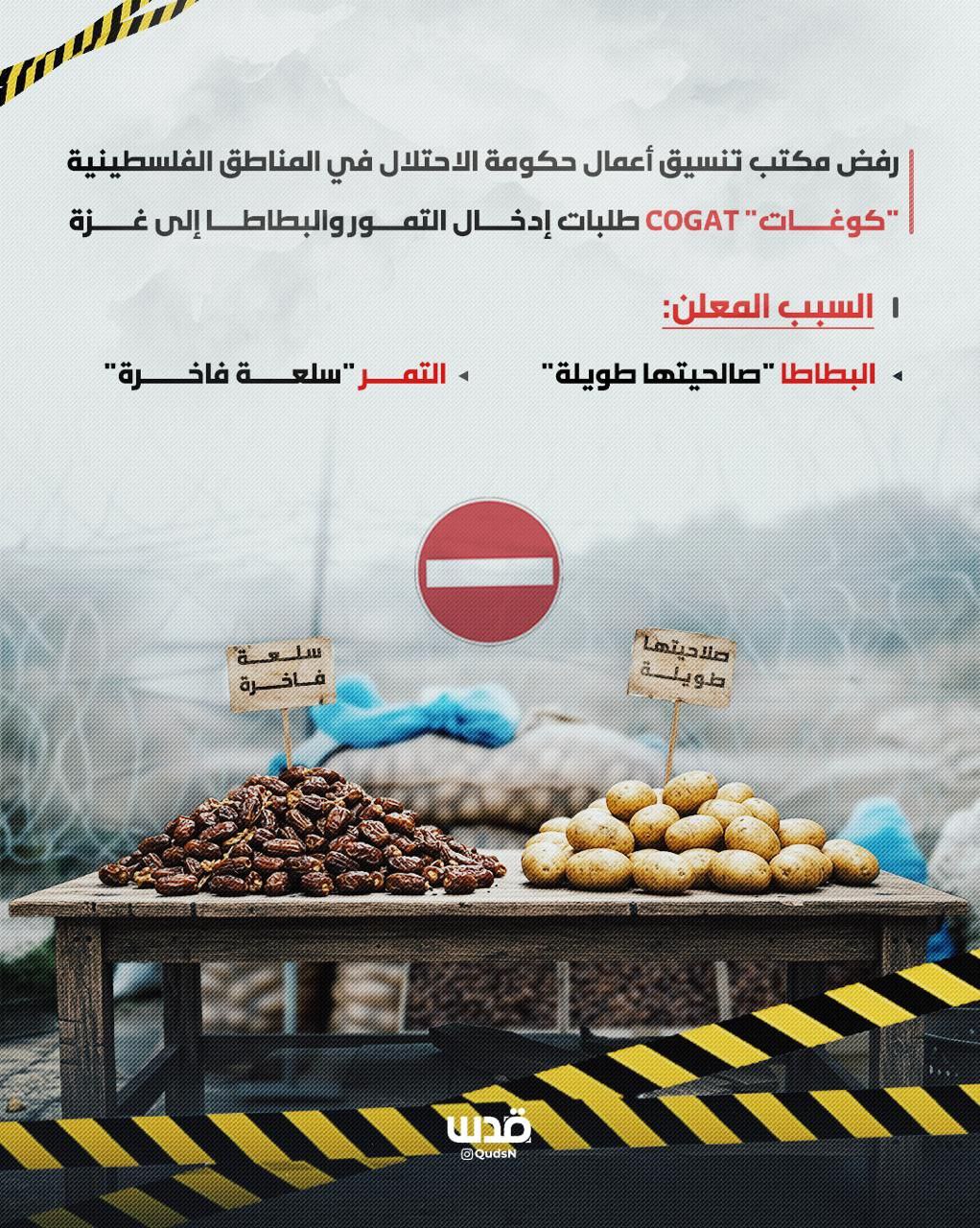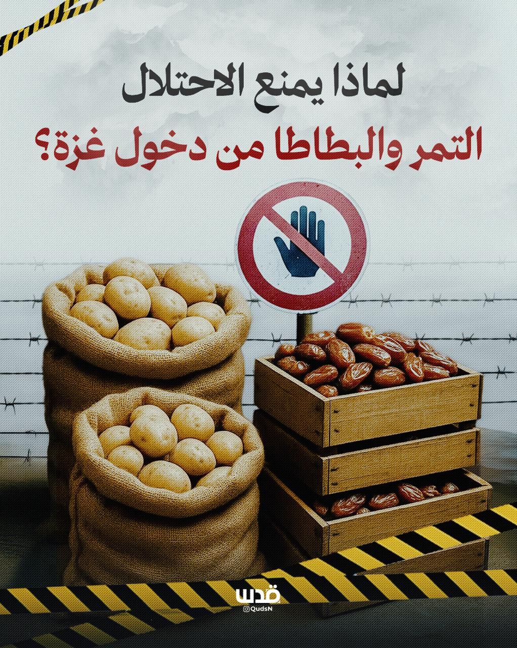 يحاول الاحتلال بسلاح التجويع كسر صمود أهالي غزة.. On أغسطس 27, 2025 لماذا يمنع إدخال الاحتلال التمر والبطاطا للفلسطينيين؟