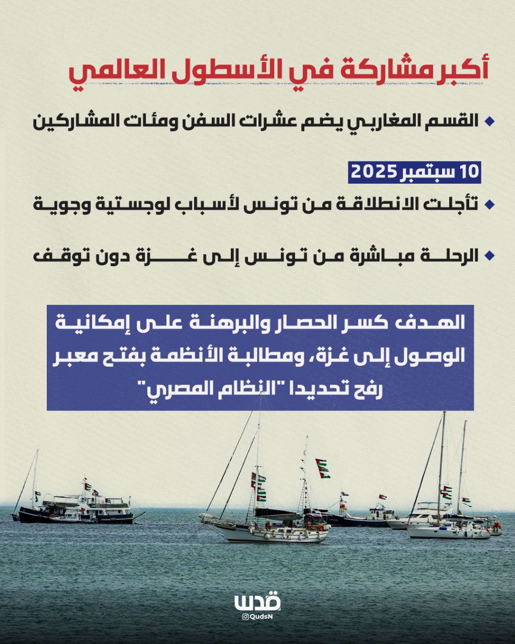 “رسالة سلام ومقاومة”: أسطول صمود من تونس يتجه إلى غزة لكسر الحصار الإسرائيلي