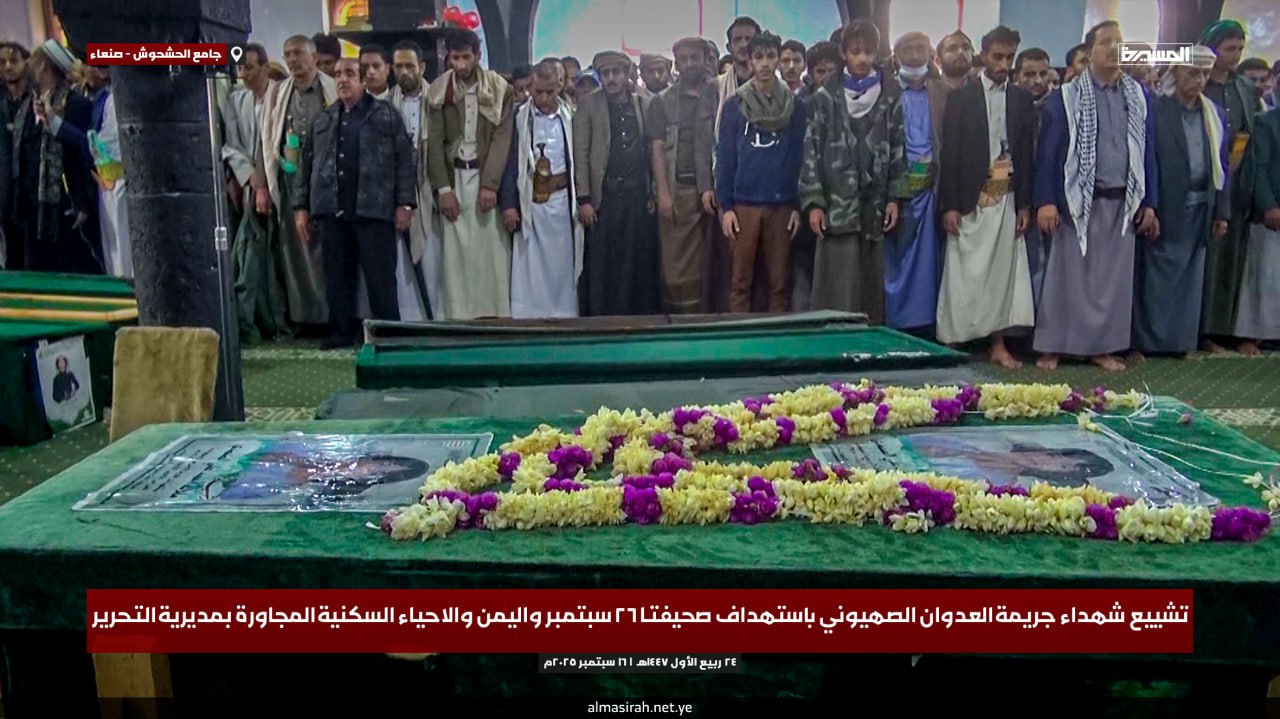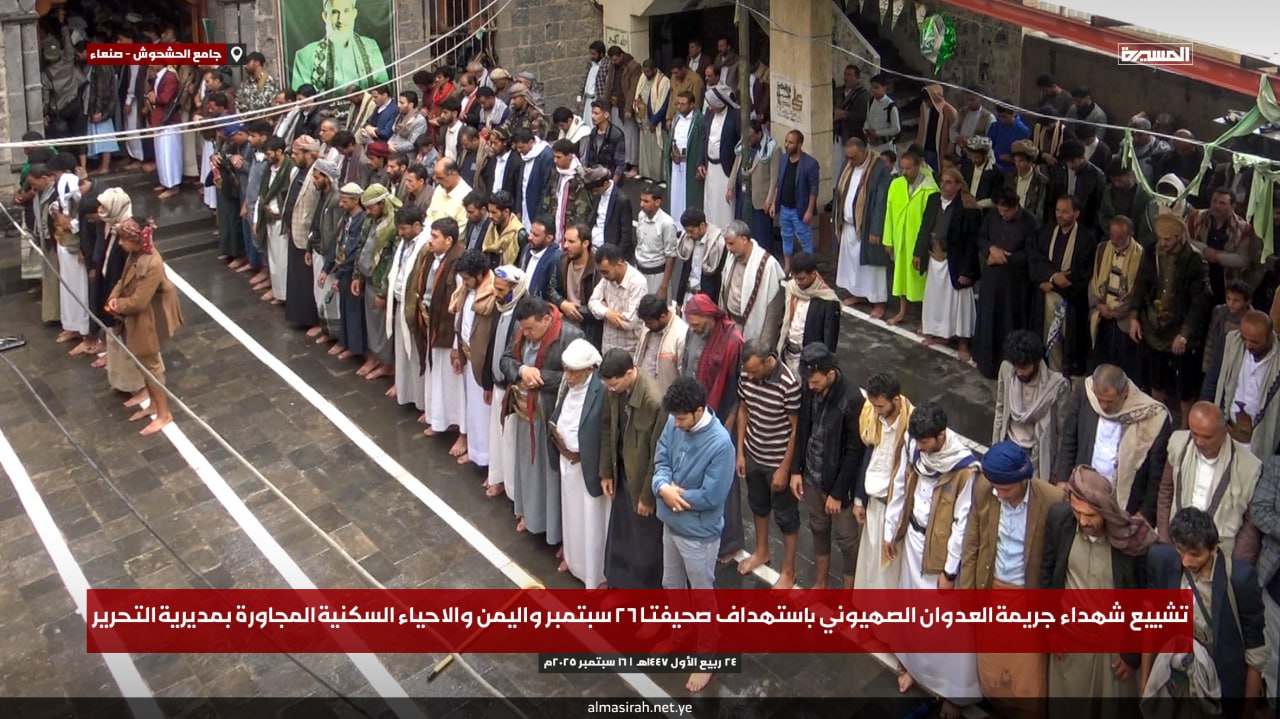 بمشاركة حاشدة.. اليمن تودع شهداء قصف إسرائيلي استهدف صحيفتي “26 سبتمبر” و”اليمن” في صنعاء (صور) On سبتمبر 16, 2025