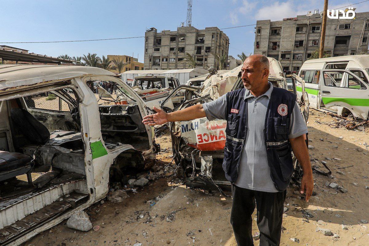حرب ضد كل شي، حتى مركبات الإسعاف.. On سبتمبر 16, 2025 عدد من سيارات الإسعاف التي دمرتها وقصفتها طائرات الاحتلال خلال استهدافها للطواقم الطبية في خانيونس جنوب قطاع غزة.