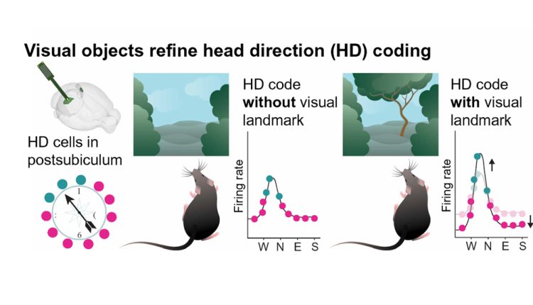 يربط الدماغ خلايا البوصلة (الجهة المتوجه اليها) بالمشهد البصري (المعـلم البصري). بهذه الطريقة، فالفأر لن يعرف”أنه متجه نحو جهة معينة” فحسب، بل “هو متجه نحو تلك الجهة المعينة نسبةً إلى ذلك المعلم.