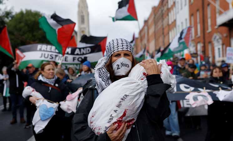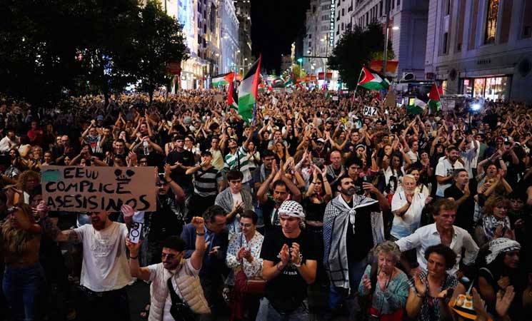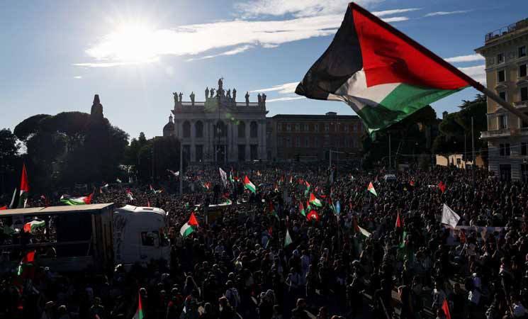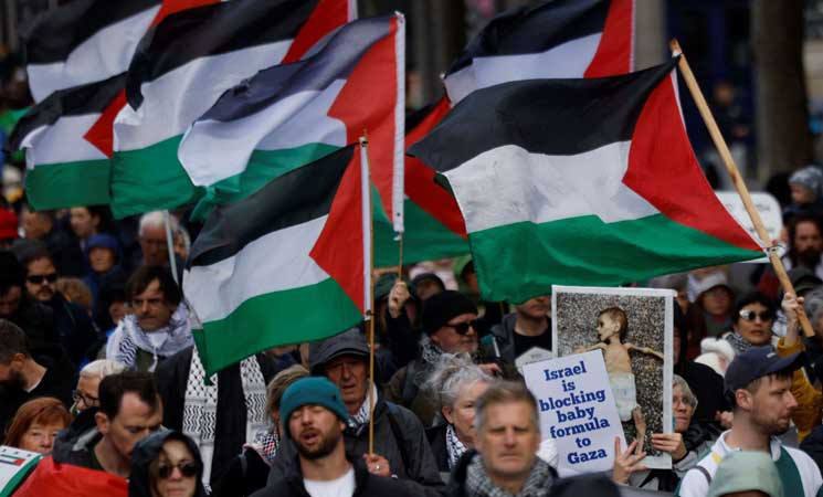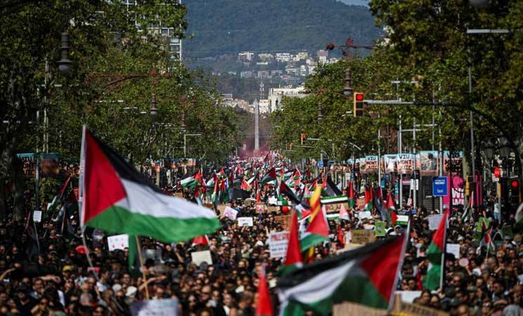 صور لمظاهرات حاشدة في عدة مدن أوروبية أمس دعماً للفلسطينيين وللمطالبة بإنهاء الحرب بقطاع غزة