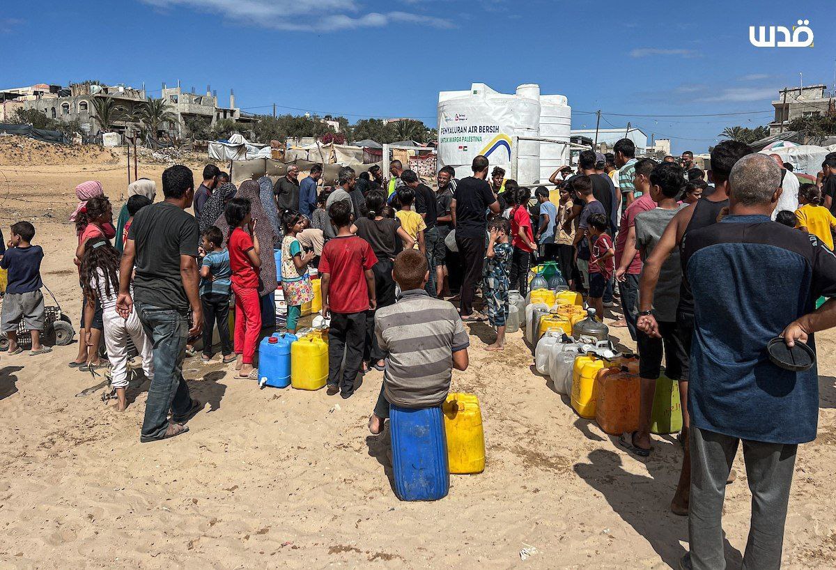 المعاناة اليومية لمحاولة الحصول على المياه الصالحة للشرب في مخيم النصيرات وسط قطاع غزة
