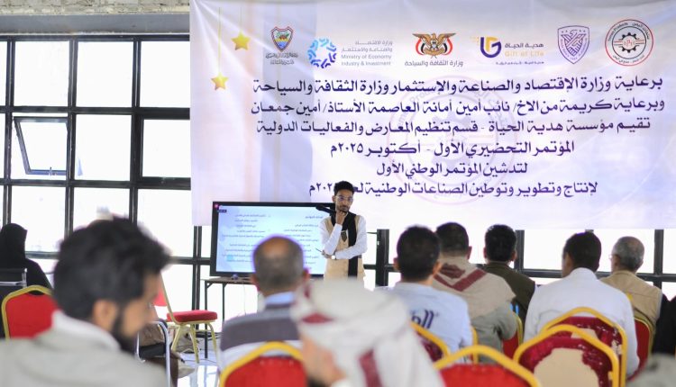 من جانبه، أكد المدير الفني والتقني لمؤسسة هدية الحياة، محمد العمراني، أن هذا الحدث الاقتصادي الأكبر في اليمن يهدف لدعم الصناعة وتحريك عجلة الإنتاج. وأشار إلى أن المؤتمر سيعقد خلال الفترة 20 – 23 أكتوبر الجاري، وسيرافقه المعرض الوطني الأول للمنتجات المحلية الذي سينطلق في 25 أكتوبر ويستمر حتى 31 من الشهر نفسه.