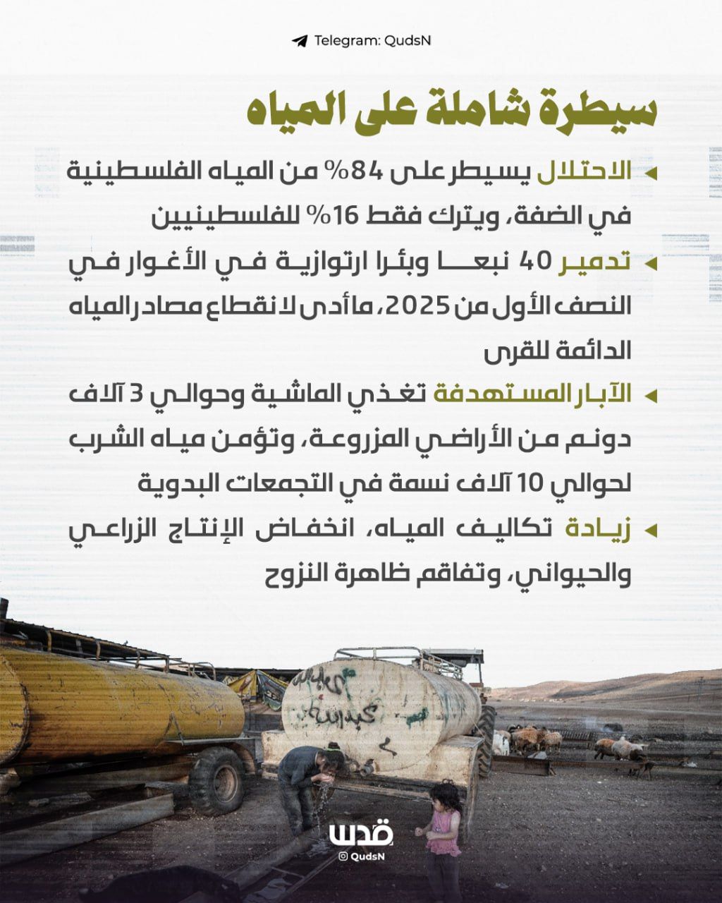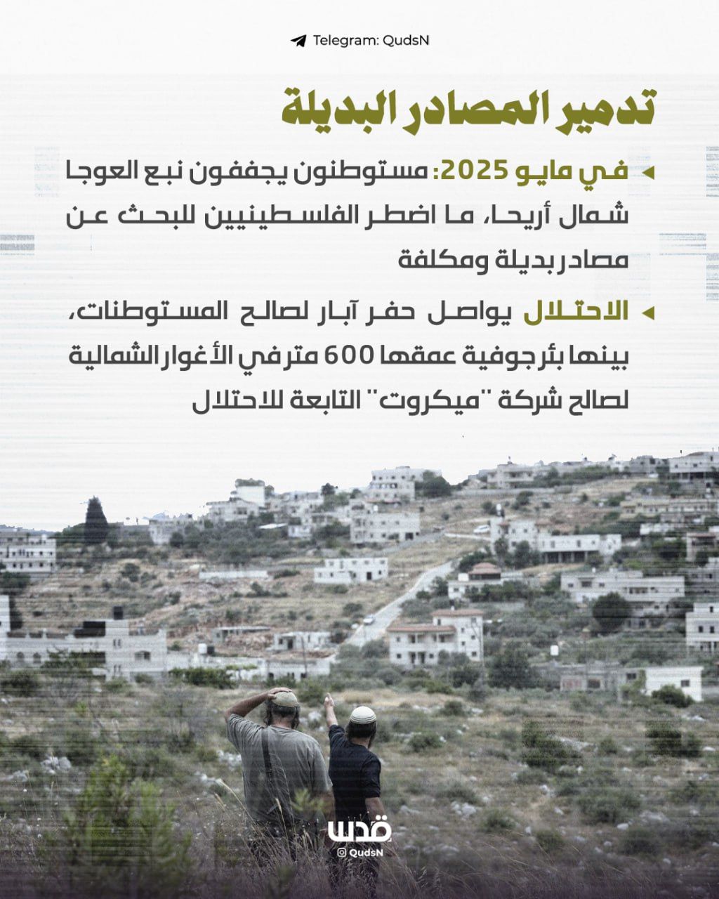 الاحتلال يواصل حربه على المياه في الضفة المحتلة لتهجير الفلسطينيين ..