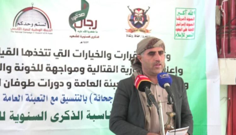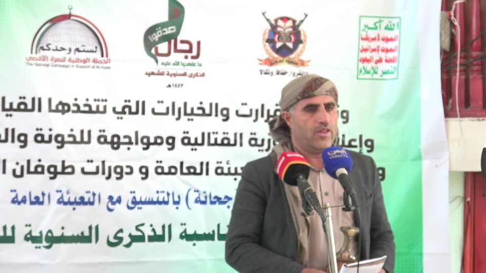 نظّمت مديرية جحانة بمحافظة صنعاء، اليوم، فعالية خطابية مركزية حاشدة إحياءً للذكرى السنوية للشهيد.