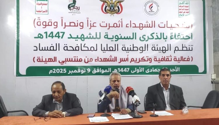 نظمت الهيئة الوطنية العليا لمكافحة الفساد اليوم الأحد، فعالية خطابية وتكريمية لأسر الشهداء من منتسبي الهيئة بمناسبة الذكرى السنوية للشهيد 1447هـ.