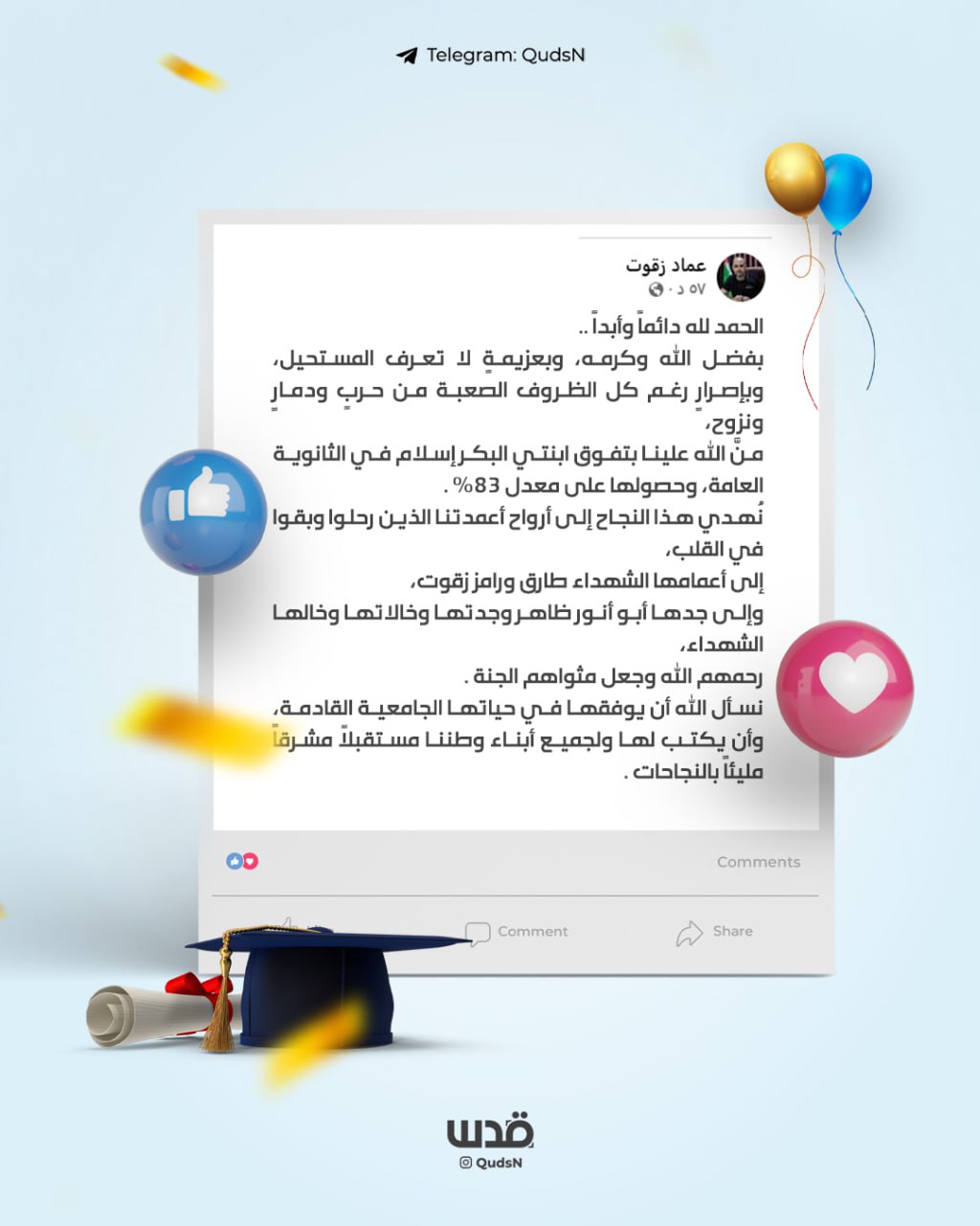 الفرح يليق بغزة وأهلها.. On نوفمبر 13, 2025 رغم الحزن والجراح، الفلسطينيون في قطاع غزة ينتزعون الفرحة ويحتفون في نتائج الثانوية.