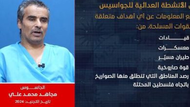 كشفت الأجهزة الأمنية اليوم عن جزء جديد وحساس من اعترافات الجاسوس مجاهد محمد علي، أحد العناصر التابعة لشبكة التجسس المشتركة التي تضم المخابرات الأمريكية والإسرائيلية والسعودية، والتي ضُبطت ضمن العملية الأمنية النوعية “ومكر أولئك هو يبور”.