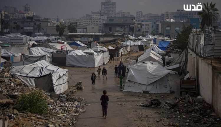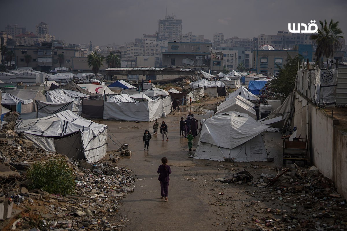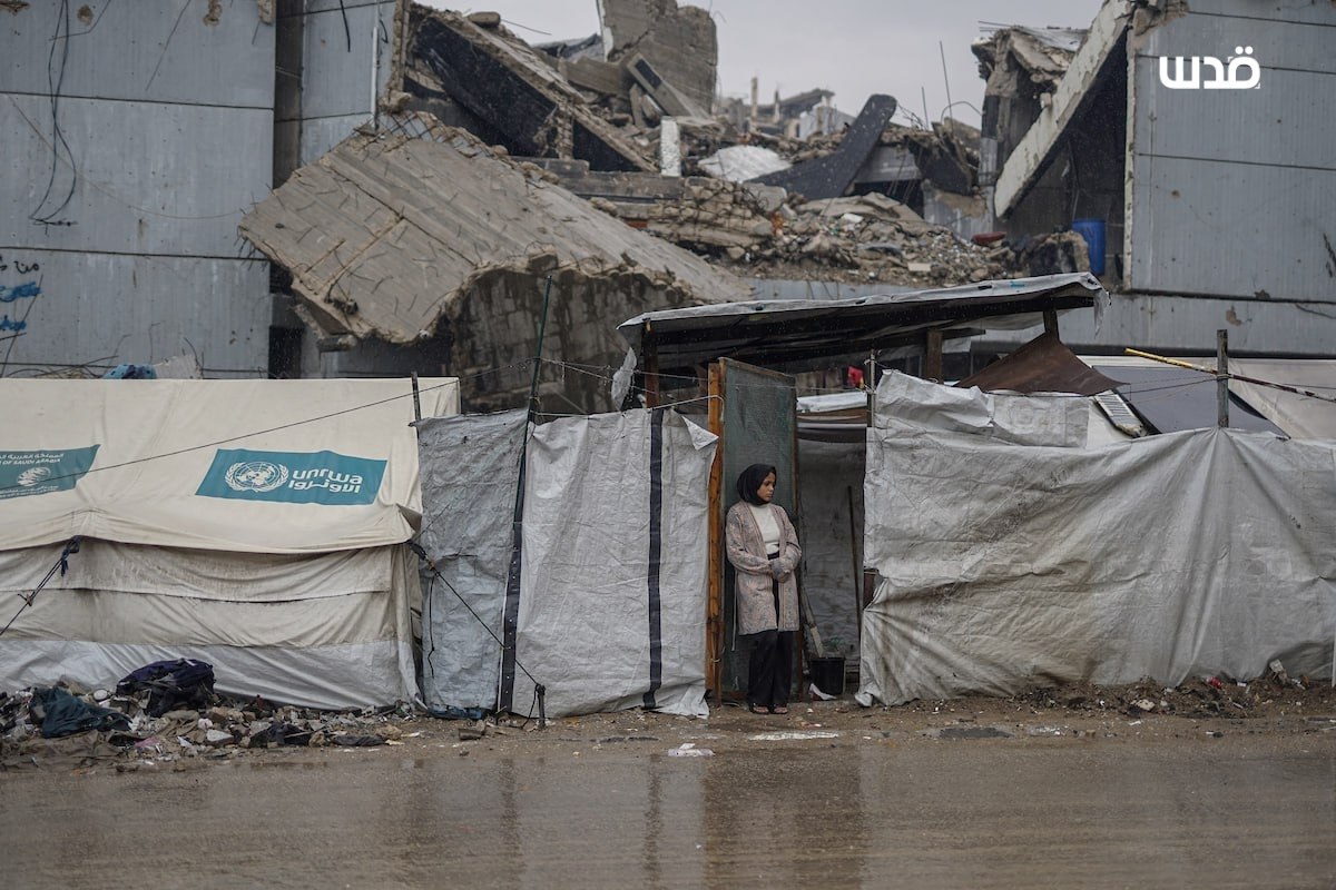ظروف قاسية يكابدها النازحون في مدينة غزة؛ بسبب غرق خيامهم بمياه الأمطار، والبرد القارس