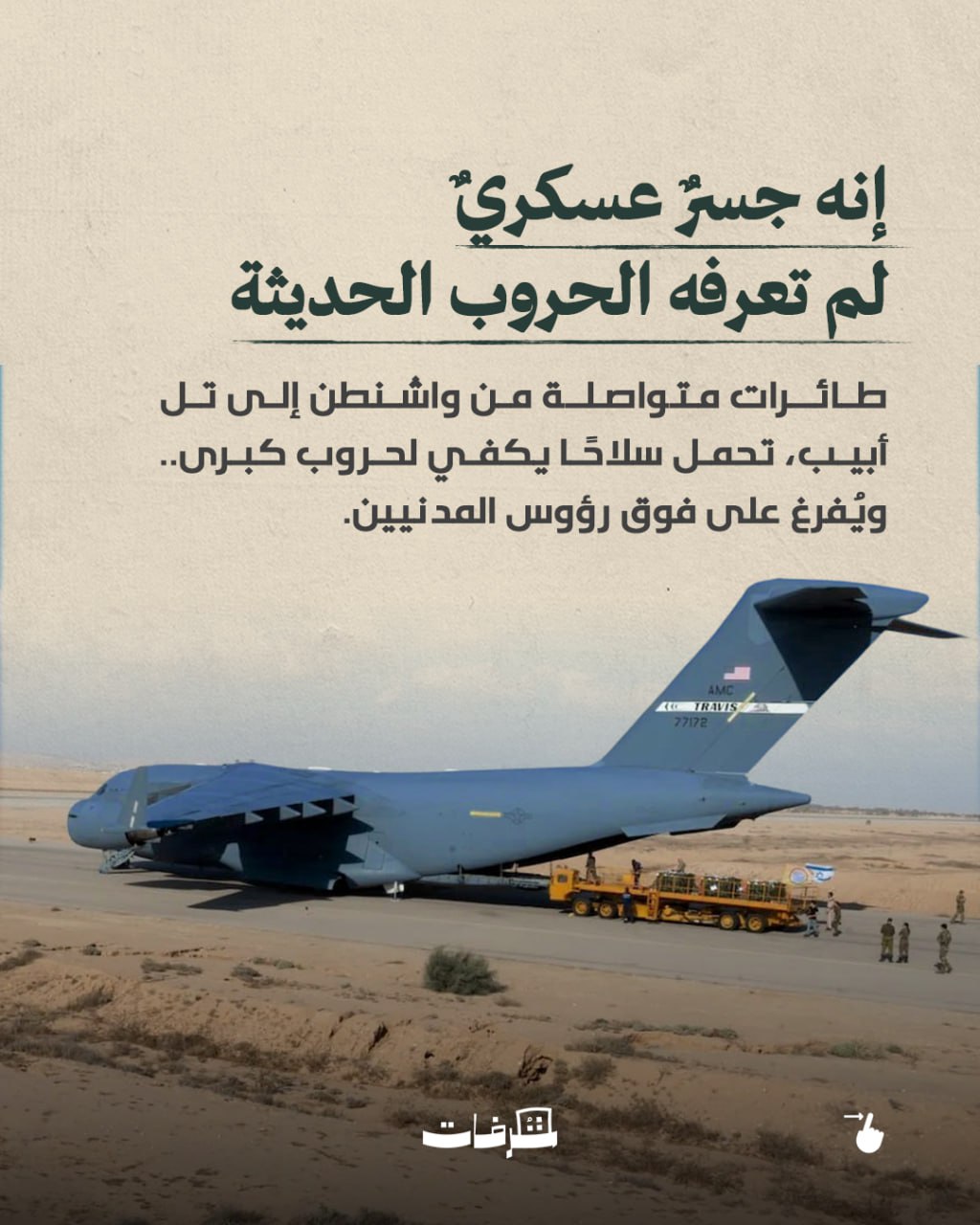 الذخيرة والمدنيون: واشنطن تنشئ “جسر موت” عسكريًا ضخمًا لإسرائيل بينما تحاصر غزة