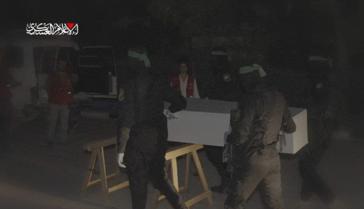 أعلنت كتائب الشهيد عز الدين القسام (الجناح العسكري لحركة حماس) وسرايا القدس (الجناح العسكري لحركة الجهاد الإسلامي)، في بيان مشترك مقتضب، عن عملية تسليم لجثمان أسير صهيوني مساء اليوم الثلاثاء.