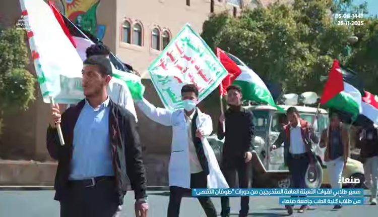 📹 شاهد | مسير طلابي لقوات التعبئة العامة المتخرجين من دورات “طوفان الأقصى” من طلاب كلية الطب جامعة #صنعاء On نوفمبر 25, 2025 مسير كلية الطب لجامعة صنعاء~1