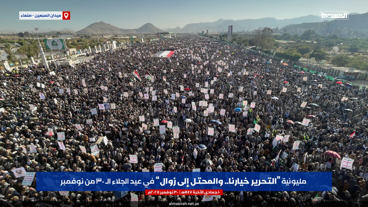 بالصور | مليونية (التحرير خيارنا.. والمحتل إلى زوال) في عيد الجلاء الـ30 من نوفمبر بـ #ميدان_السبعين في #صنعاء On نوفمبر 30, 2025