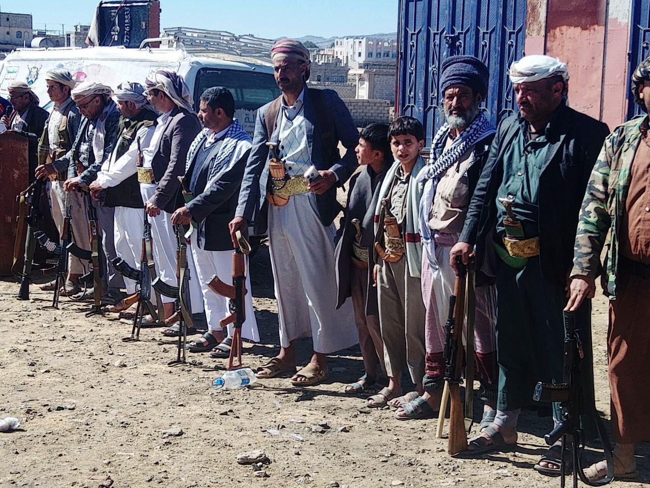 من عزلة غربي سنحان.. وقفة مسلحة حاشدة تجدد الجهوزية القتالية والاستعداد لمواجهة الأعداء ونصرة فلسطين