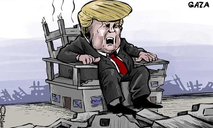كاريكاتير.. المجرم ترامب يصلب السلام في مجلسه المزعوم !