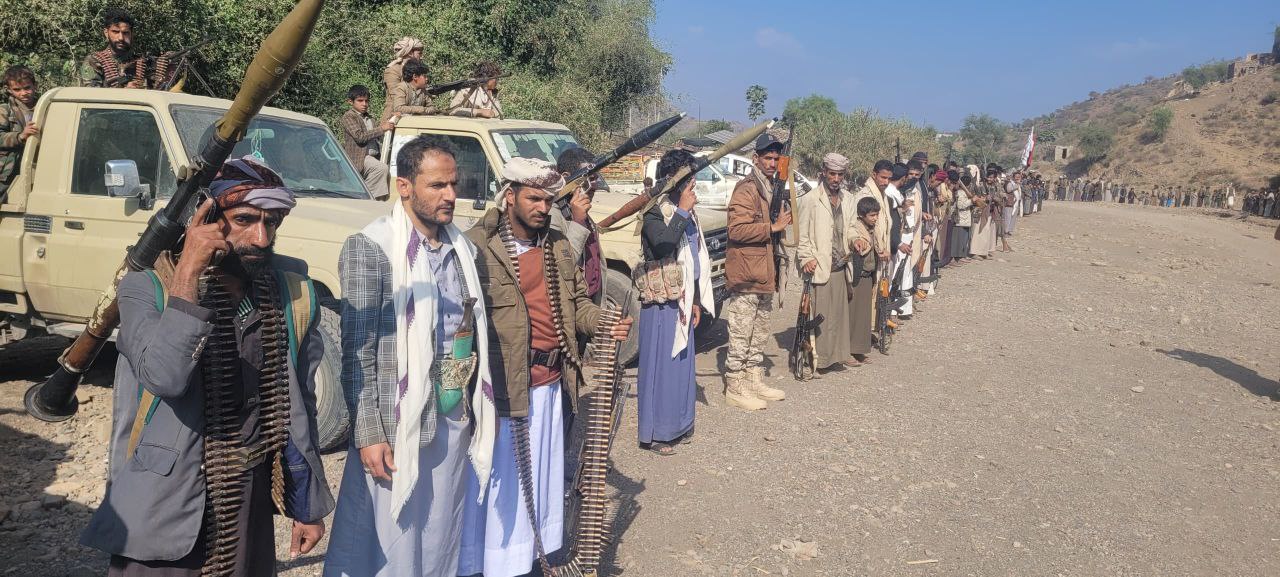 نفذت التعبئة العامة في عزلة بني يوسف بمديرية الحيمة الداخلية، اليوم، وقفة قبلية مسلحة، أعقبها تطبيق عملي متقدم على السلاح، يأتي ذلك ضمن جهود تصعيد التعبئة العامة ورفع مستوى الجاهزية القتالية.