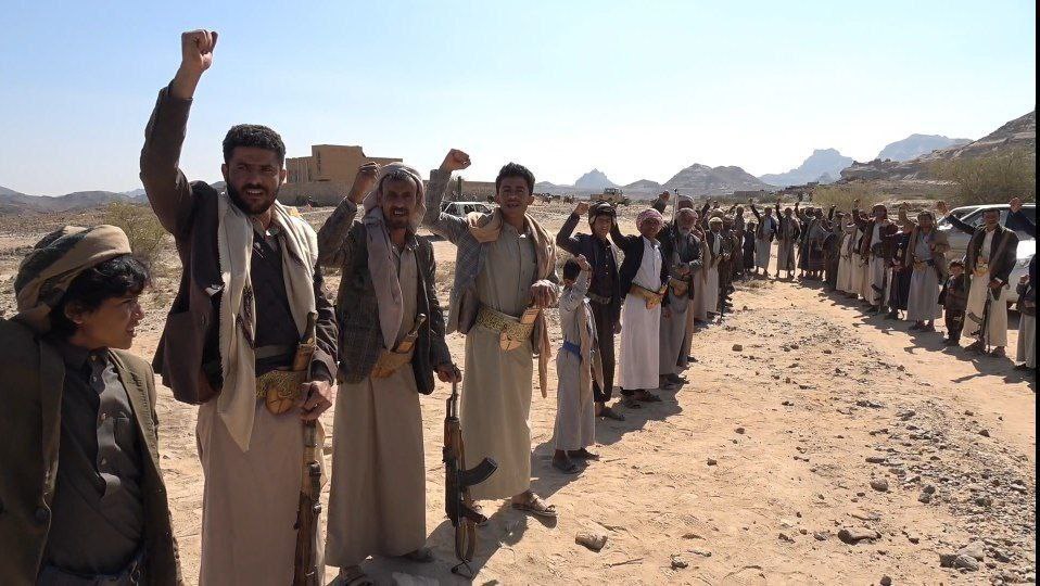 وبعث المشاركون برسائل قوة صريحة أكدت أن إرادة القبيلة اليمنية صلبة ولا تلين، معلنين التمسك المطلق بخيارات الصمود في وجه التحديات. كما شدد المحتشدون على استمرارهم في مسار التعبئة العامة ورفع الجاهزية القتالية لحماية الدين والذود عن سيادة الوطن.