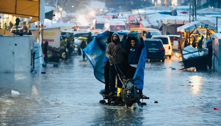 ويعيش سكان قطاع غزة، وخاصة النازحين في الخيام، أوضاعاً مأساوية مع توالي المنخفضات الجوية والأمطار الغزيرة التي تسببت في غرق مراكز الإيواء، في ظل نقص حاد في وسائل التدفئة ومواد العزل نتيجة الحصار الإسرائيلي الخانق.