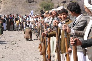 شهدت عزلة الحصنين بمديرية الطيال وقفة مسلحة حاشدة، عبر المشاركون فيها عن غضبهم العارم إزاء الإساءات الأمريكية المتكررة للمقدسات الإسلامية وفي مقدمتها القرآن الكريم.