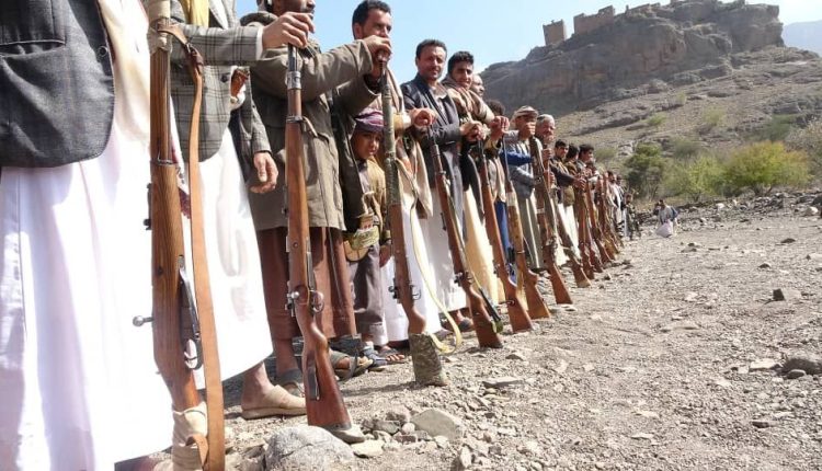 شهدت عزلة الحصنين بمديرية الطيال وقفة مسلحة حاشدة، عبر المشاركون فيها عن غضبهم العارم إزاء الإساءات الأمريكية المتكررة للمقدسات الإسلامية وفي مقدمتها القرآن الكريم.