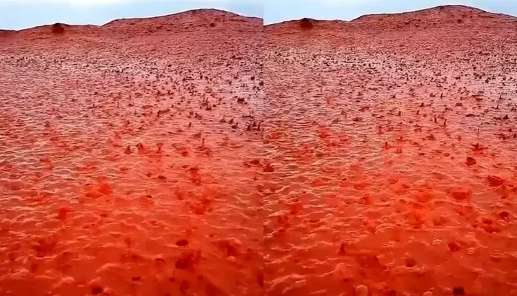 ووثّقت صور ومقاطع فيديو انتشرت واسعاً على وسائل التواصل الاجتماعي أنهاراً حمراء تنساب من المنحدرات الصخرية لتختلط بمياه البحر، في لوحة بصرية أثارت دهشة المتابعين.