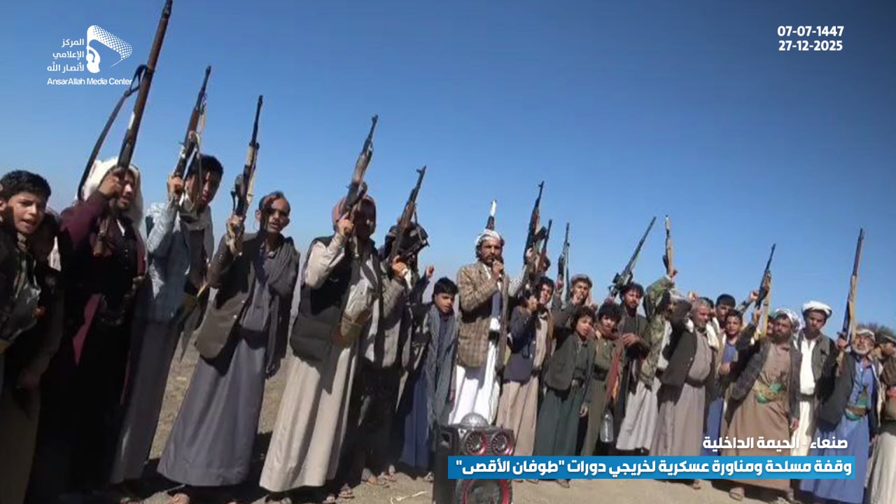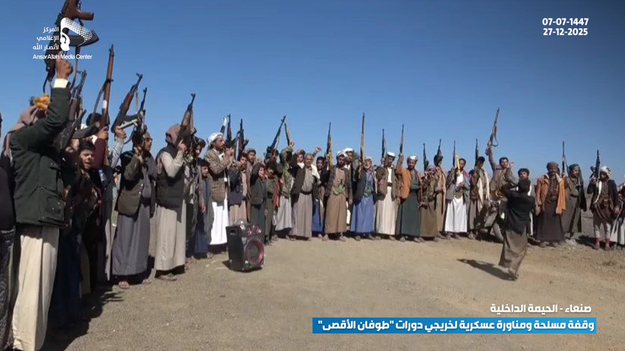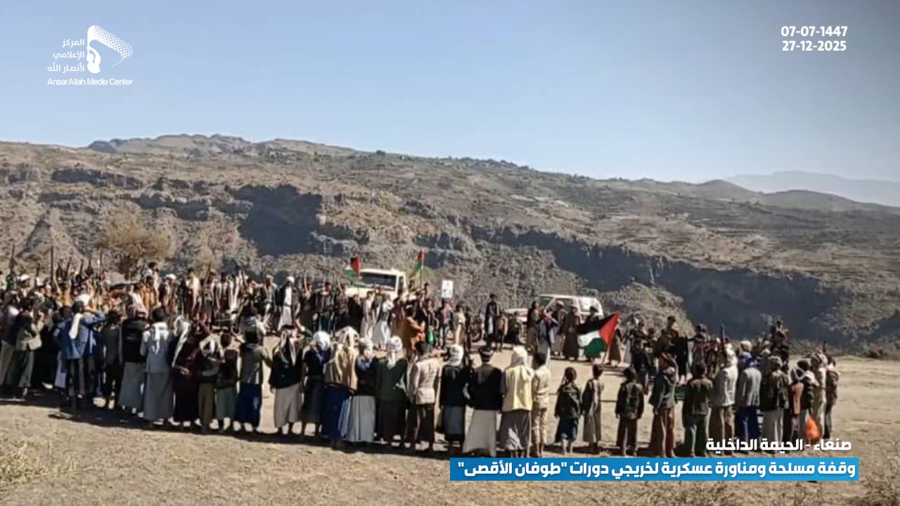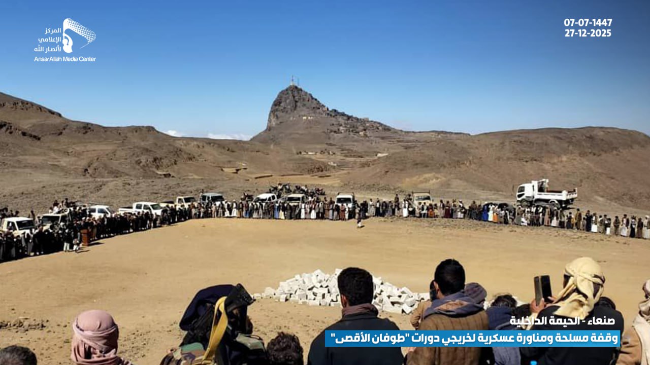 في عرضٍ عكس القوة والجهوزية العالية، نفذ خريجو الدورات العسكرية المفتوحة “طوفان الأقصى” من أبناء عزل (بني النمري، بني الحذيفة، ومنطقة القُدمة بعزلة بني السياغ) بمديرية الحيمة الداخلية بمحافظة صنعاء، وقفة مسلحة مهيبة ومناورة عسكرية ميدانية، وذلك تنديداً بالاستهداف الأمريكي المتكرر للمقدسات الإسلامية وعلى رأسها القرآن الكريم.
