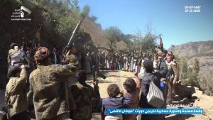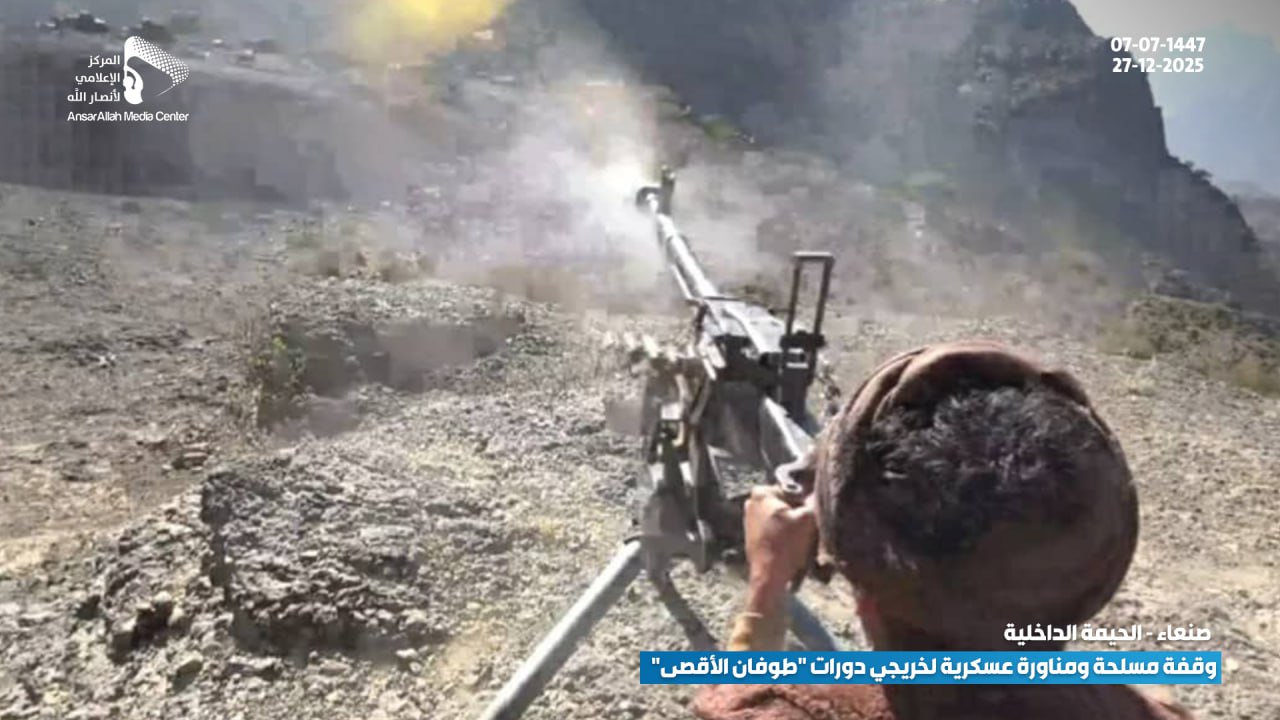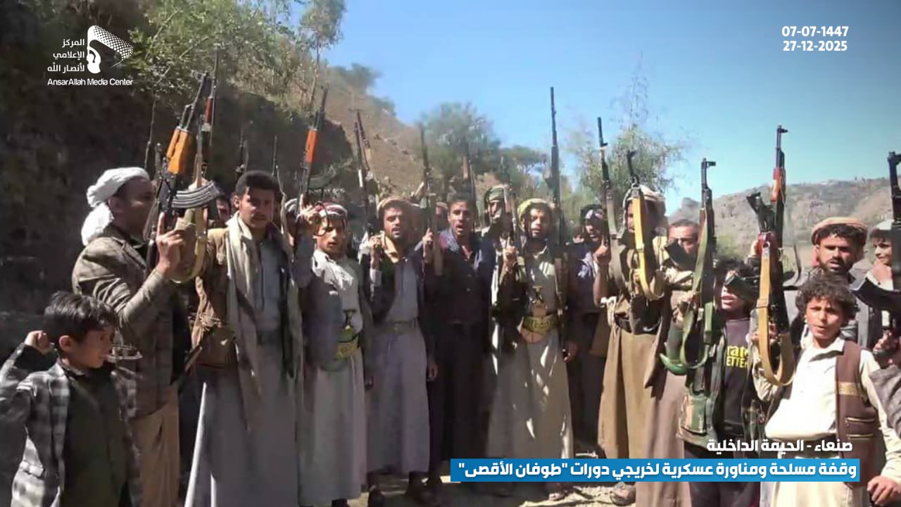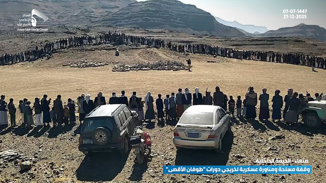 في عرضٍ عكس القوة والجهوزية العالية، نفذ خريجو الدورات العسكرية المفتوحة “طوفان الأقصى” من أبناء عزل (بني النمري، بني الحذيفة، ومنطقة القُدمة بعزلة بني السياغ) بمديرية الحيمة الداخلية بمحافظة صنعاء، وقفة مسلحة مهيبة ومناورة عسكرية ميدانية، وذلك تنديداً بالاستهداف الأمريكي المتكرر للمقدسات الإسلامية وعلى رأسها القرآن الكريم.