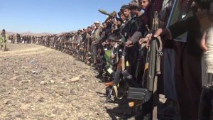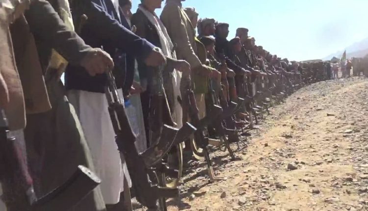نظم أبناء عزلة الشرفة بمديرية بني حشيش في محافظة صنعاء، اليوم، وقفة قبلية مسلحة تأكيداً على وحدة الصف والموقف تجاه المستجدات الراهنة.