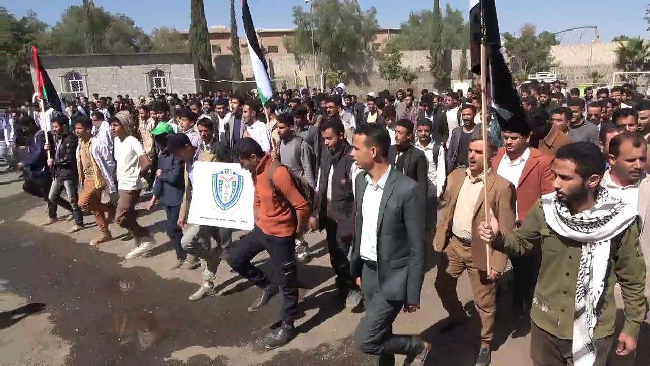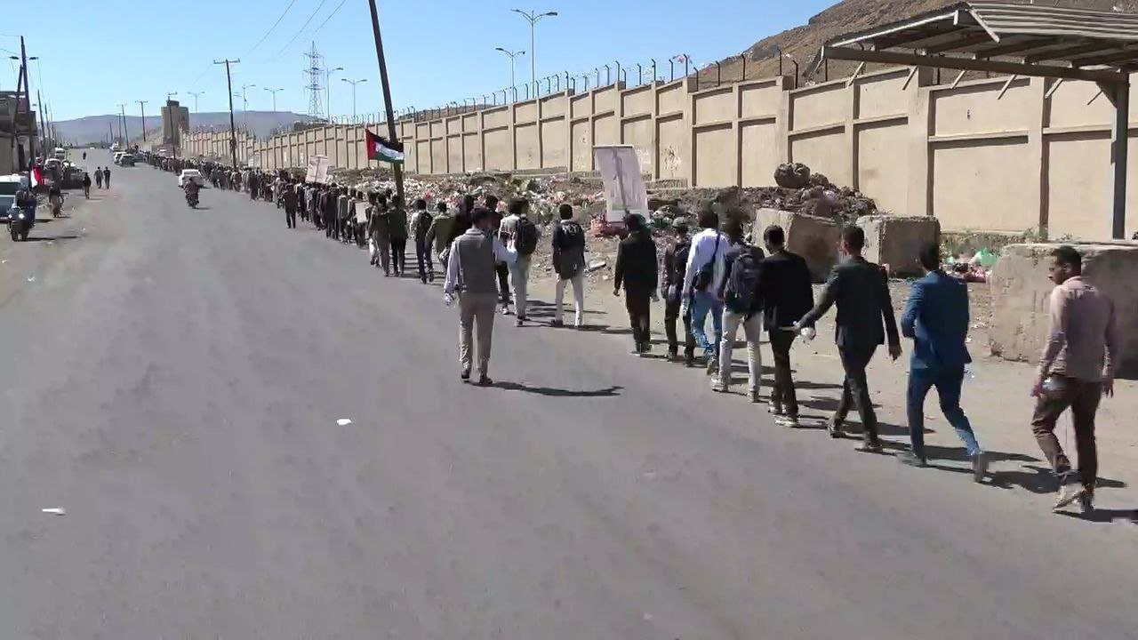 واختتم المسير الراجل بالتأكيد على مواصلة الفعاليات والأنشطة المنددة بجرائم الأعداء، ودعوة كافة الجامعات اليمنية والمؤسسات التعليمية إلى رفع وتيرة الحراك الشعبي والتوعوي.