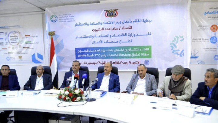نظمت وزارة الاقتصاد والصناعة والاستثمار، اليوم بصنعاء، لقاءً تشاورياً موسعاً لمناقشة المسودة النهائية لتعديل القانون رقم (26) لسنة 1999م المنظم لمهنة تدقيق ومراجعة الحسابات.