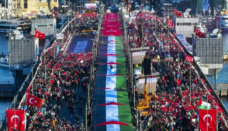 شهدت مدينة إسطنبول، فجر اليوم الخميس، تظاهرة جماهيرية حاشدة ضمت عشرات الآلاف، انطلقت من مساجد المدينة التاريخية باتجاه جسر غالاطة، تعبيراً عن التضامن المطلق مع الشعب الفلسطيني.