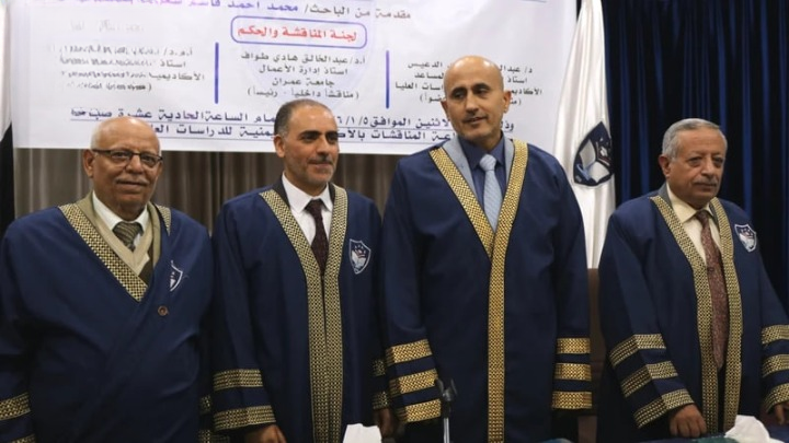 منحت الأكاديمية اليمنية للدراسات العليا درجة الماجستير للباحث محمد أحمد شعرة، عن رسالته العلمية المتميزة والموسومة بـ “العوامل الخمسة الكبرى للشخصية وعلاقتها بصناعة القرار الأخلاقي لدى مدراء المؤسسة العامة للاتصالات”.
