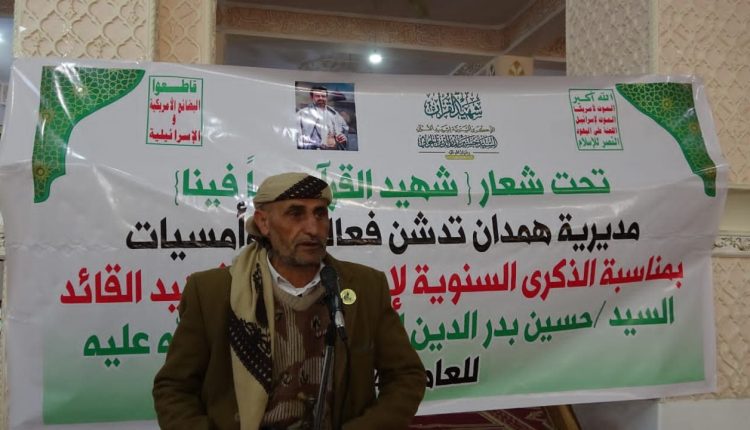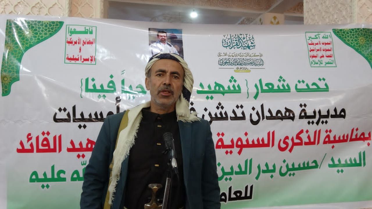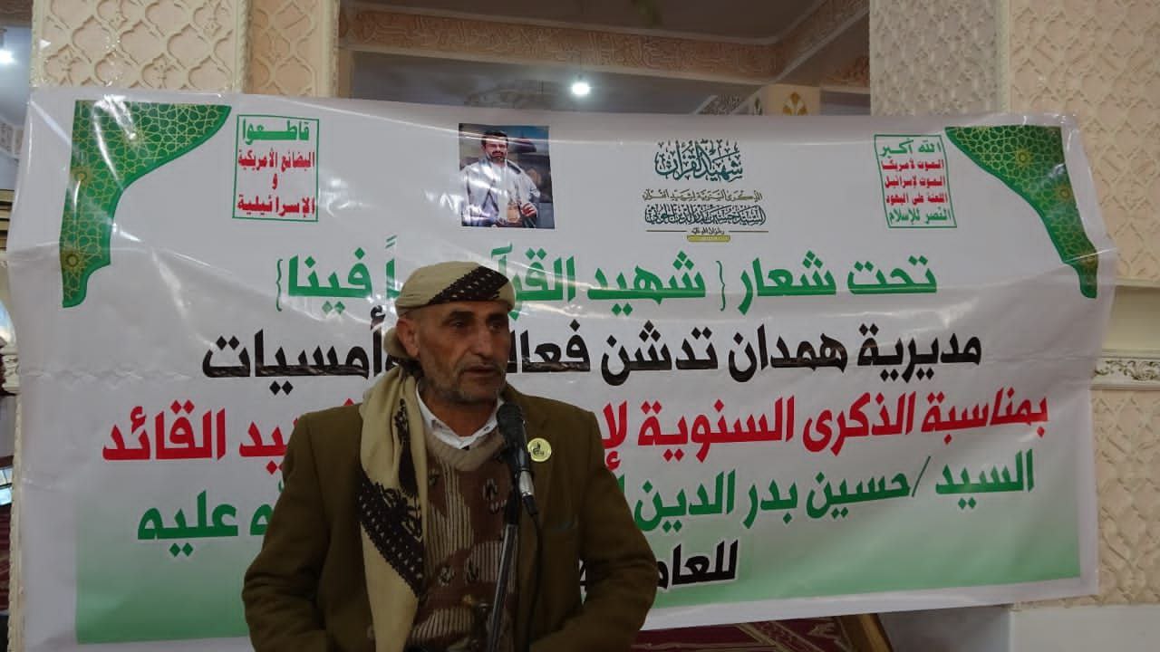 أقامت مديرية همدان بمحافظة صنعاء، اليوم، فعالية خطابية مركزية إحياءً للذكرى السنوية لشهيد القرآن، السيد حسين بدر الدين الحوثي.