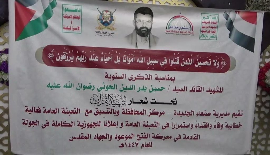 بزخم شعبي ورسمي كبير، شهدت مديرية صنعاء الجديدة بمحافظة صنعاء، اليوم، فعالية خطابية مركزية حاشدة إحياءً للذكرى السنوية لشهيد القرآن، السيد حسين بدر الدين الحوثي “رضوان الله عليه”، وسط تأكيدات على مواصلة السير في الطريق الذي خطه الشهيد القائد بمشروعه القرآني النهضوي.