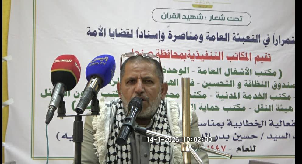 اختتمت محافظة صنعاء، اليوم، فعالياتها الخطابية والثقافية المكرسة للذكرى السنوية لشهيد القرآن، السيد حسين بدر الدين الحوثي للعام 1447هـ.