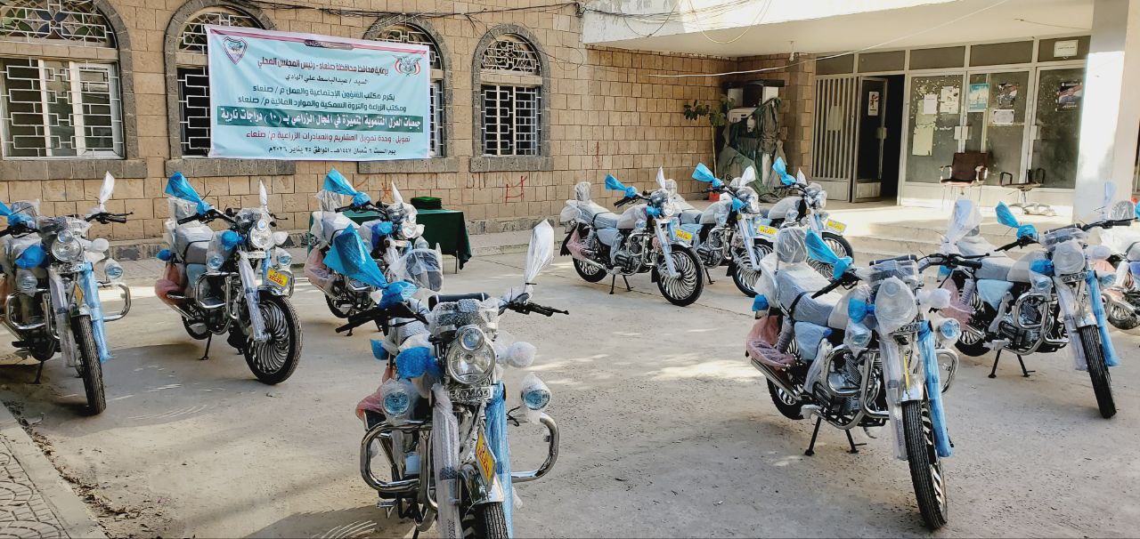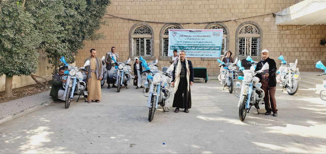 كرّم محافظ صنعاء، عبدالباسط الهادي، عدداً من جمعيات العزل التنموية المتميزة في القطاع الزراعي، بتقديم 10 دراجات نارية تبلغ قيمتها 4 ملايين و600 ألف ريال.